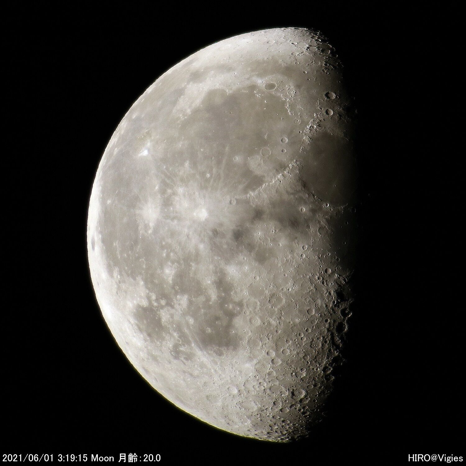 2021年06月26日 令和3(2021)年6月1日の天体観測(月の直焦点撮影、木星の直焦点撮影) 6月1日(火)の天体観測です。この日は月の直焦点撮影、木星の直焦点撮影を行いました。まずは月に直焦点撮影です。この日は月齢20.xでした。だいぶ見える範囲が小さくなってきましたが、欠け際のクレーター等が良く見えていました。次に木星の直焦点撮影です。この日は木星本体の観測はせずに木星の衛星が写るような観測を行いました。この日は以上になります。 「天体観測」カテゴリの最新記事 < 前の記事次の記事 > コメント コメントフォーム 名前 コメント 記事の評価 リセット リセット 顔 星 情報を記憶 コメントを投稿する