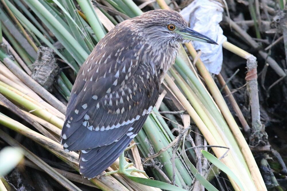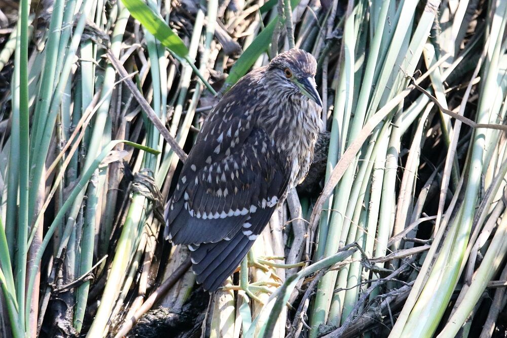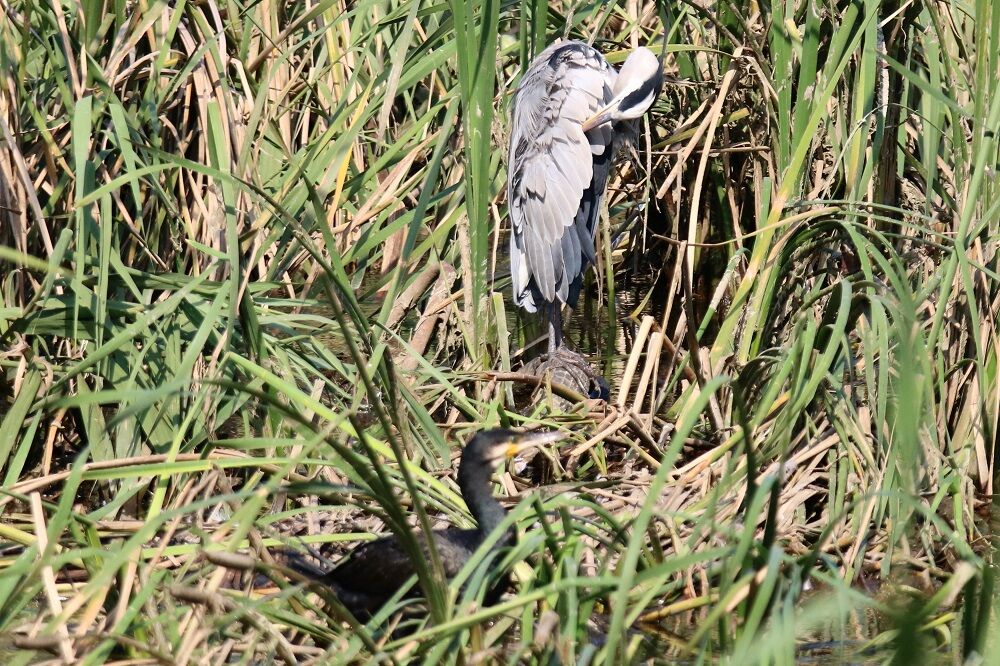 大山橋の上流側を見るとアオサギとカワウがいました。下流側には久々に登場のゴイサギの幼鳥がいました。