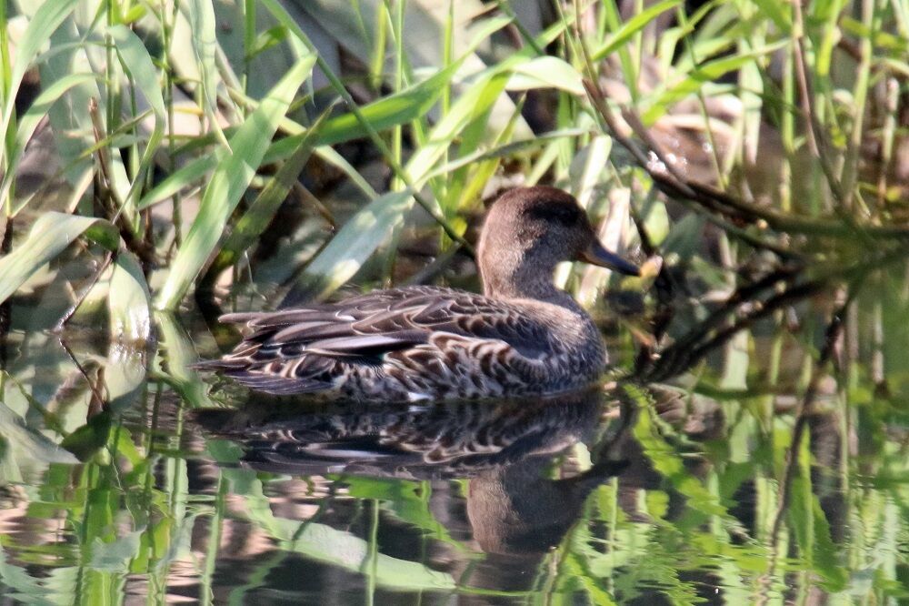 少し下流方向に進むと別のダイサギがいました。冬のカモのコガモのメスも登場しました。