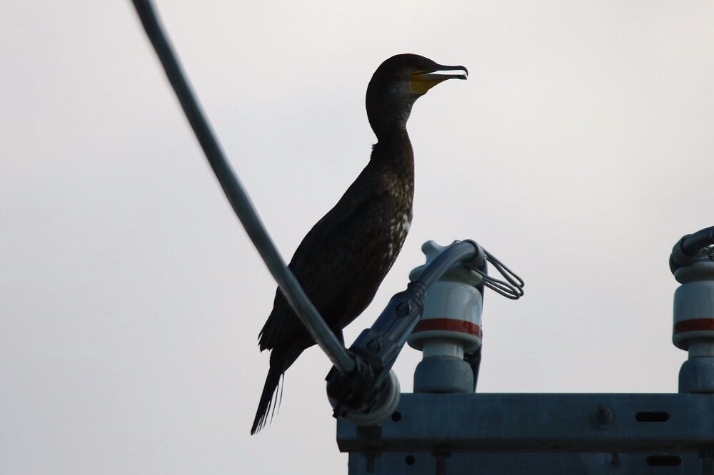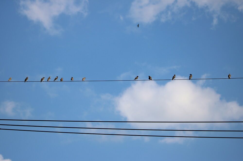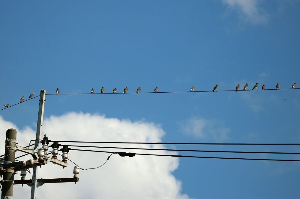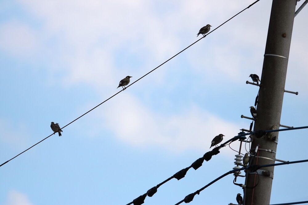 分水路の奥に来ました。電線には沢山のムクドリがいました。