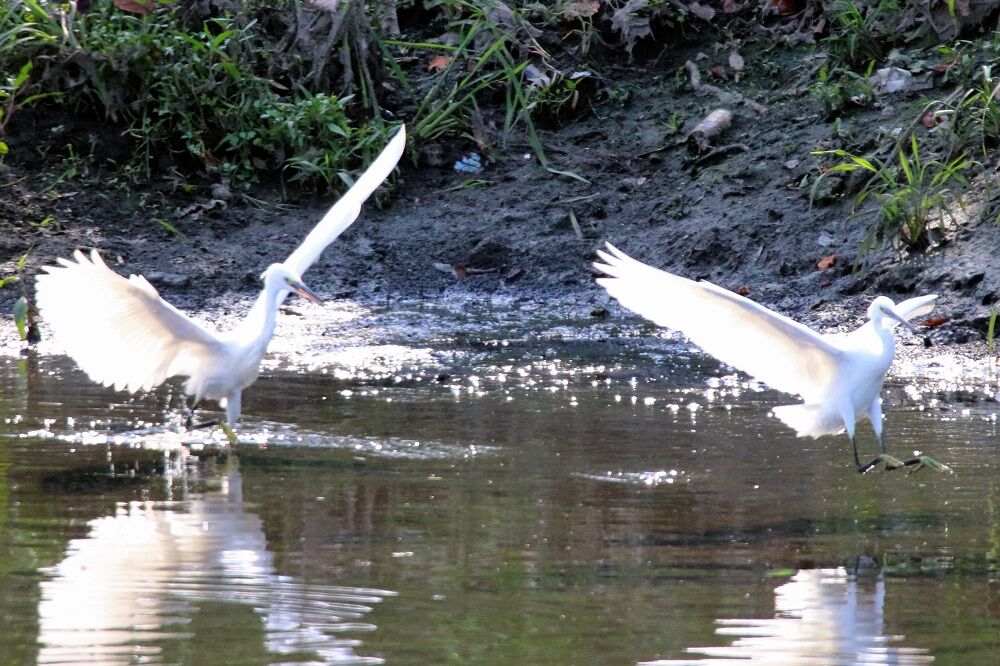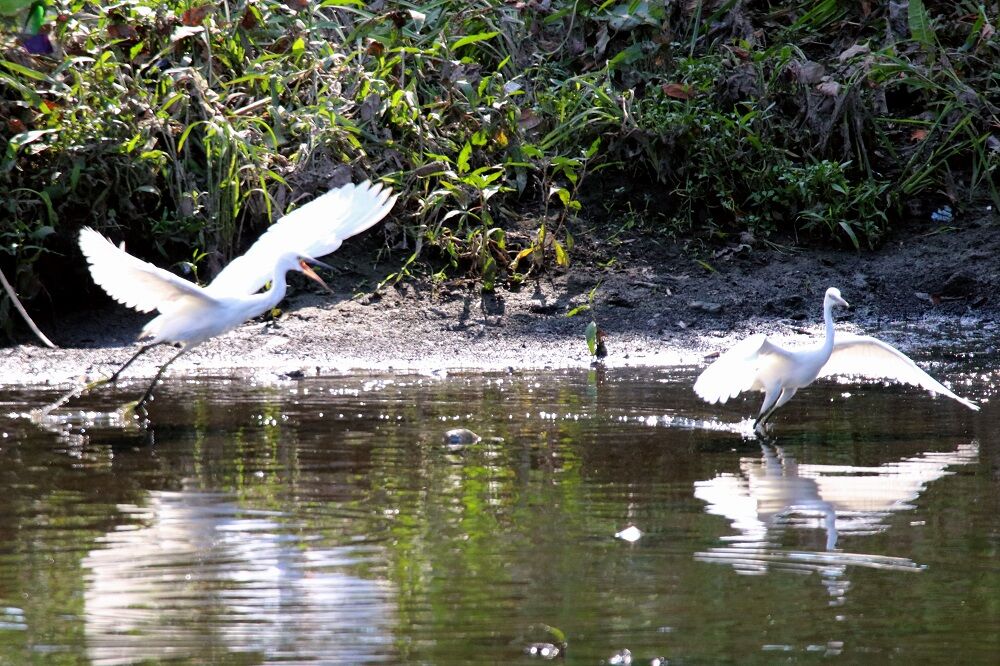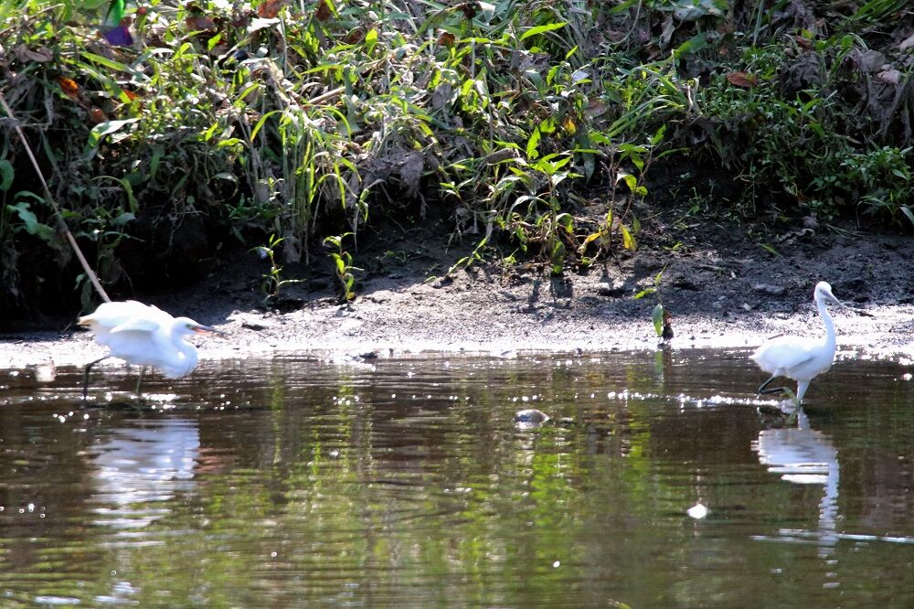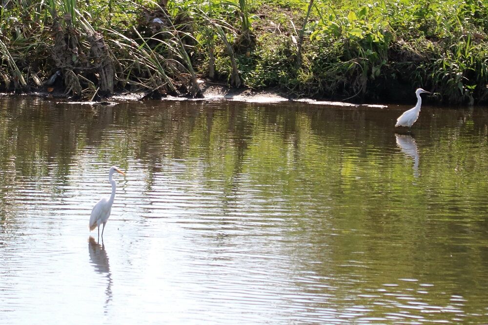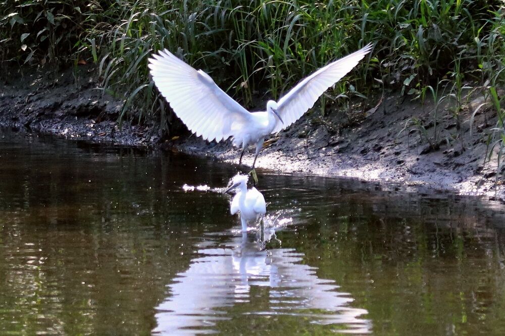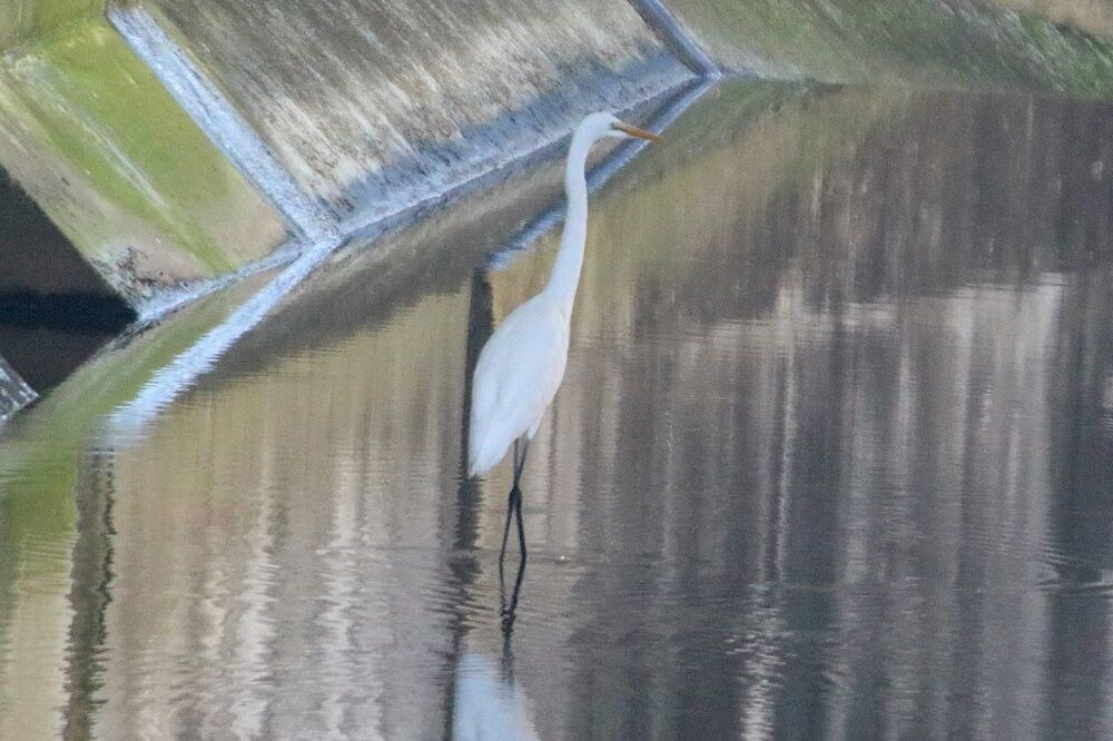 9月10日(金)の鳥さんのVol.2です。引き続き、国分川で野鳥の観察・撮影を怒っています。紙敷川の調整池から国分川に戻りました。高杯橋の下流側にはダイサギとコサギがいました。どこからかコサギがもう一羽現れました。