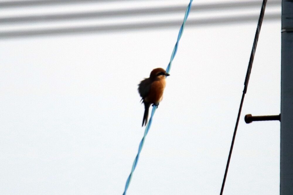 元来たところを戻ります。矢切の最初のところの坂川沿いの電線には一羽のモズがいました。