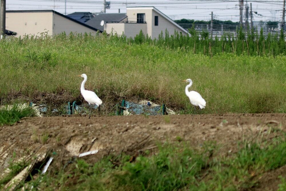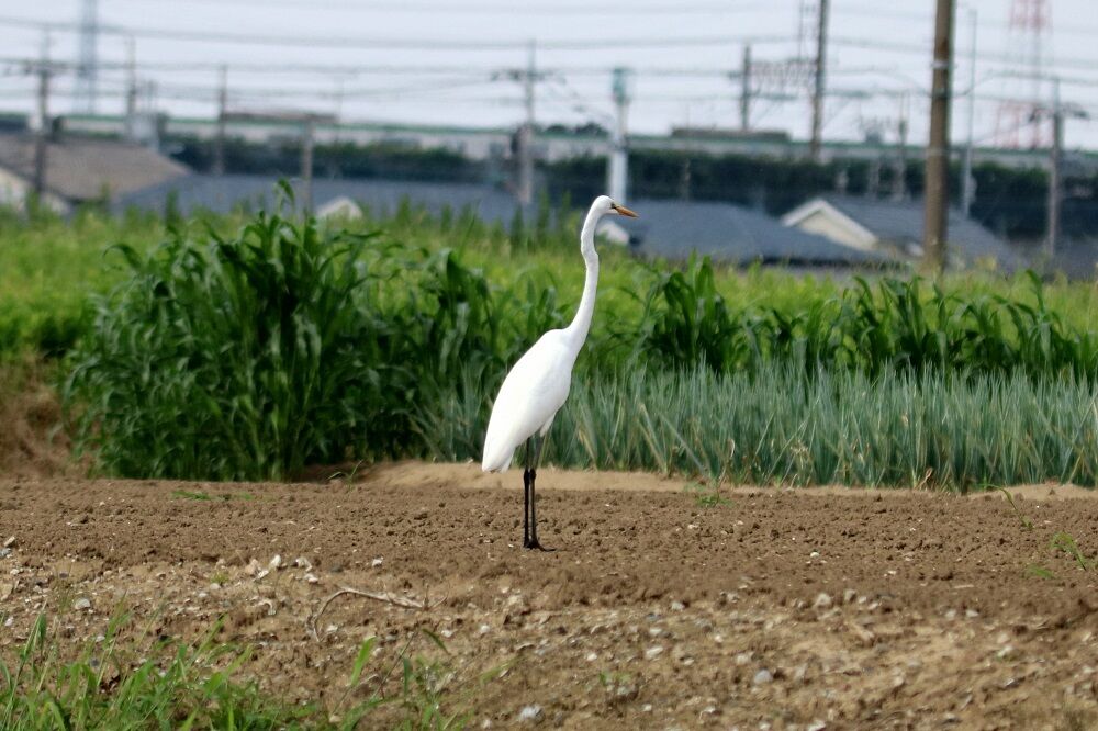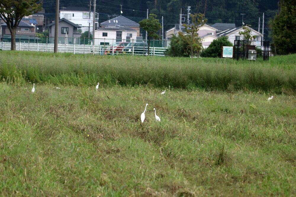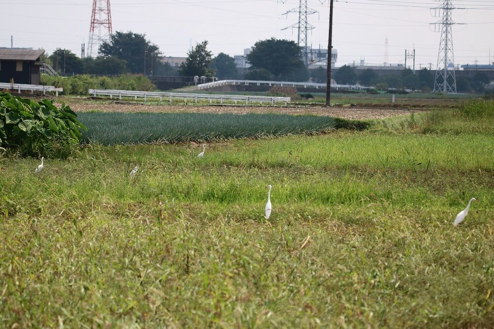 先程のサギたちが集まる畑を方向を変えて撮ってみると結構な数が入っているのが分かります。
