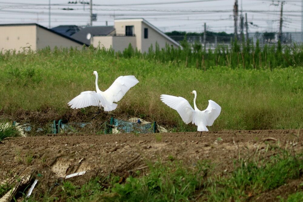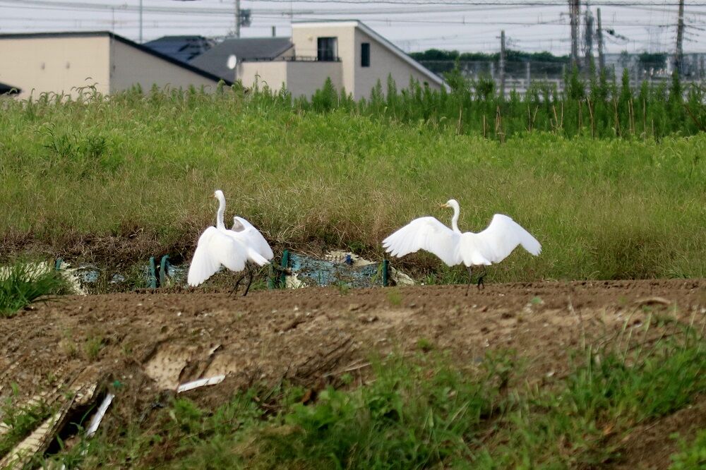 ダイサギと飛翔して近くに現れたダイサギがいました。