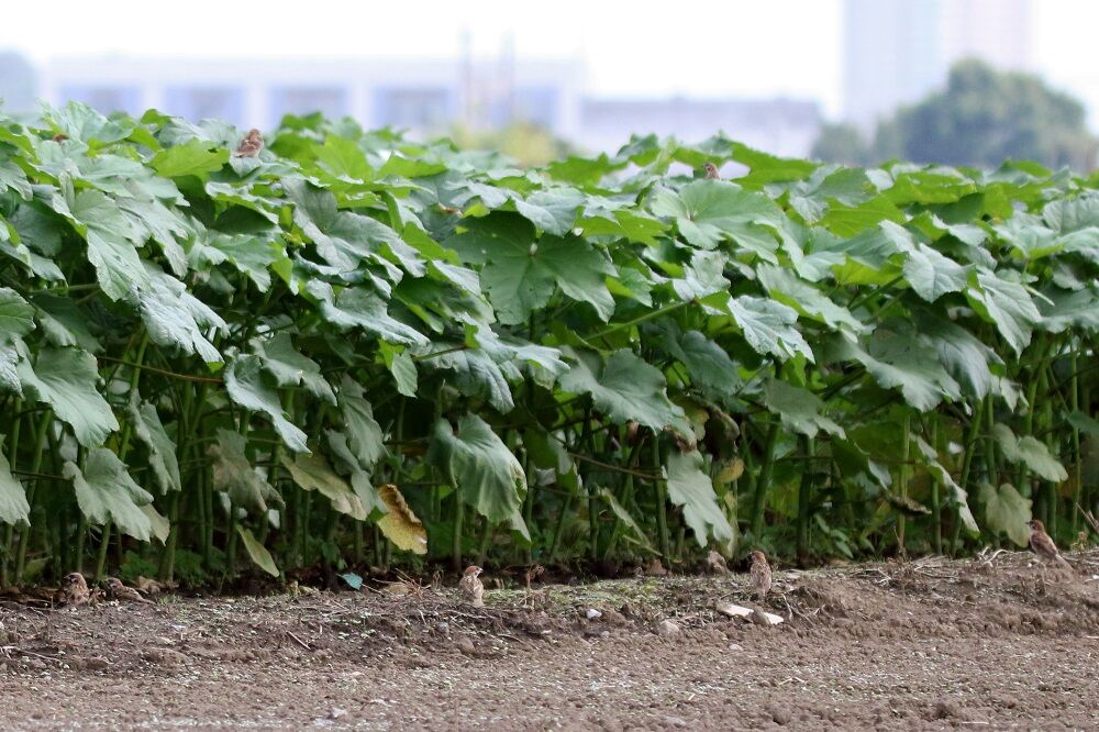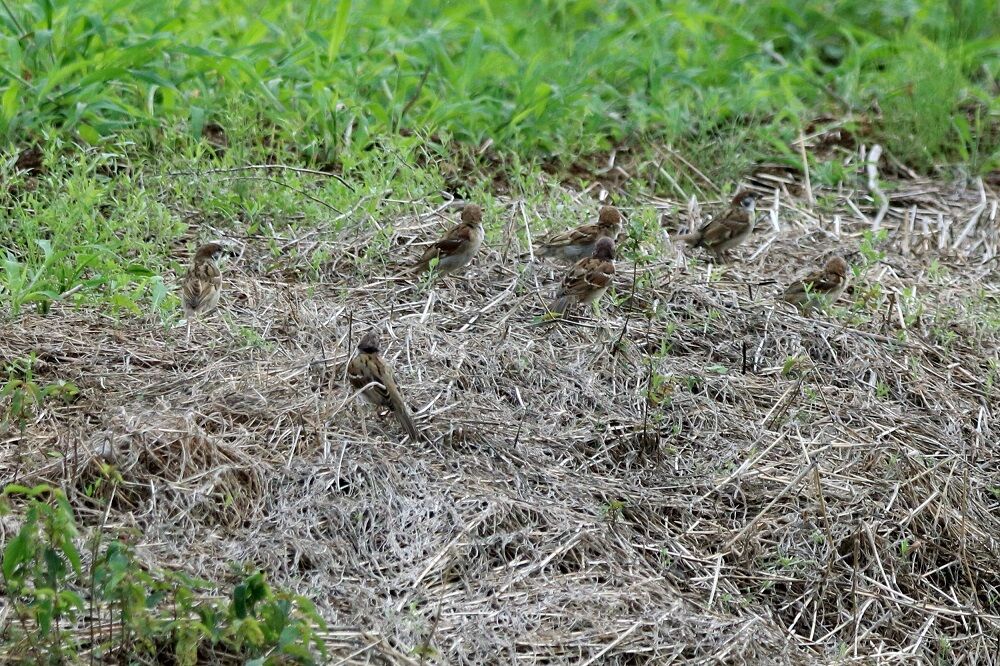 何かを狙っているようですが、あまり動きません。ただいま耕作中の畑の中にも沢山のスズメが入っている場所がありました。