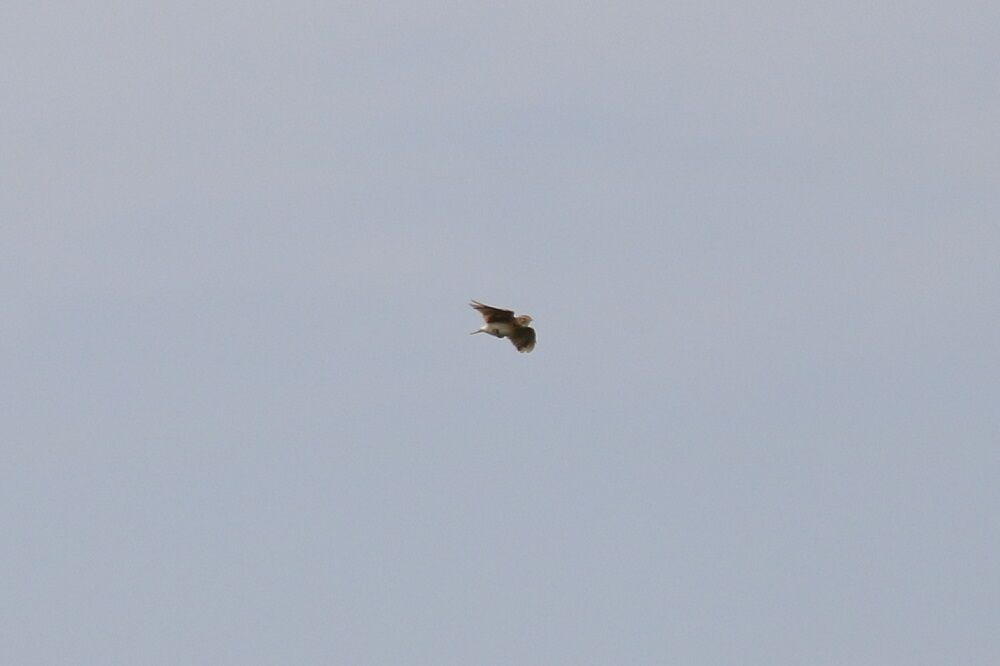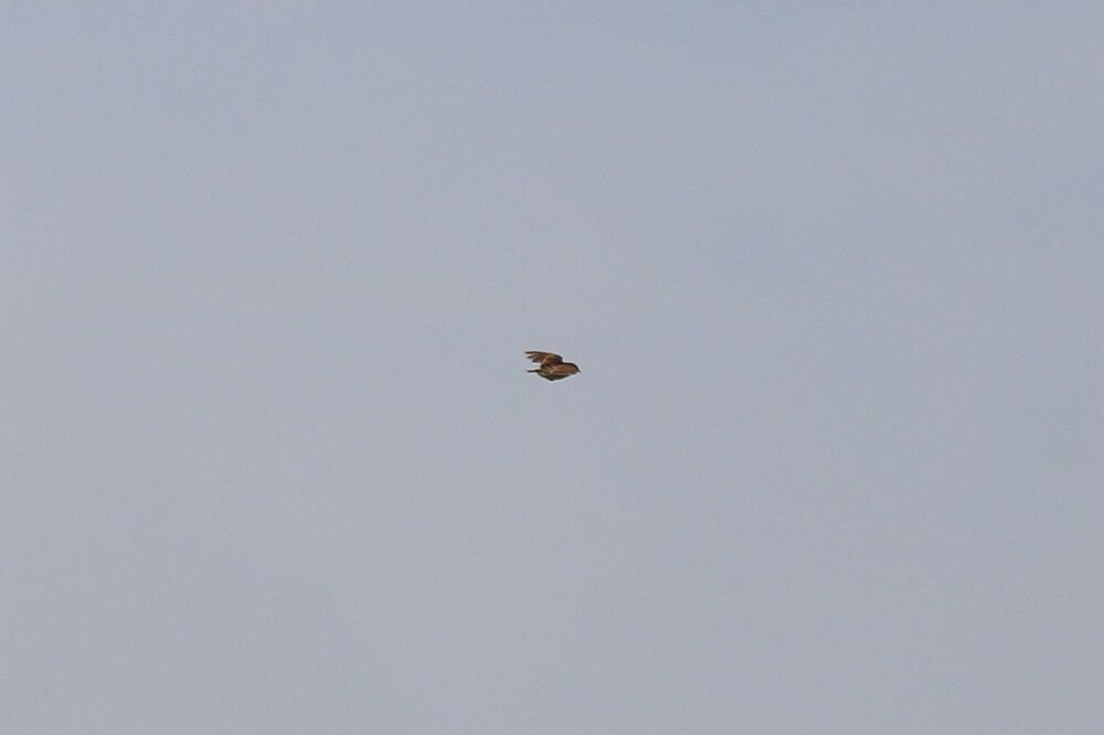 小さくて見難いですが、ヒバリも飛んでいます。この時期は囀り飛翔のような飛び方はせず、普通の飛び方です。