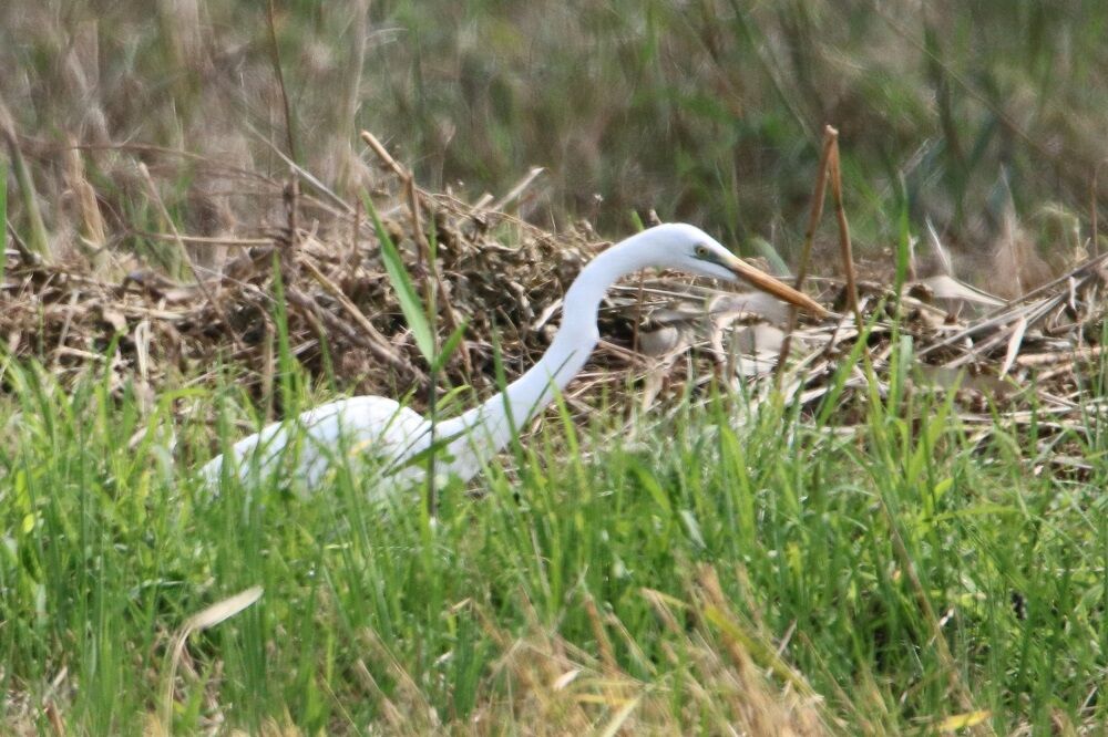 あまり動いてくれず残念ですが、後ろを見ると結構近いところまでダイサギが近付いていました。