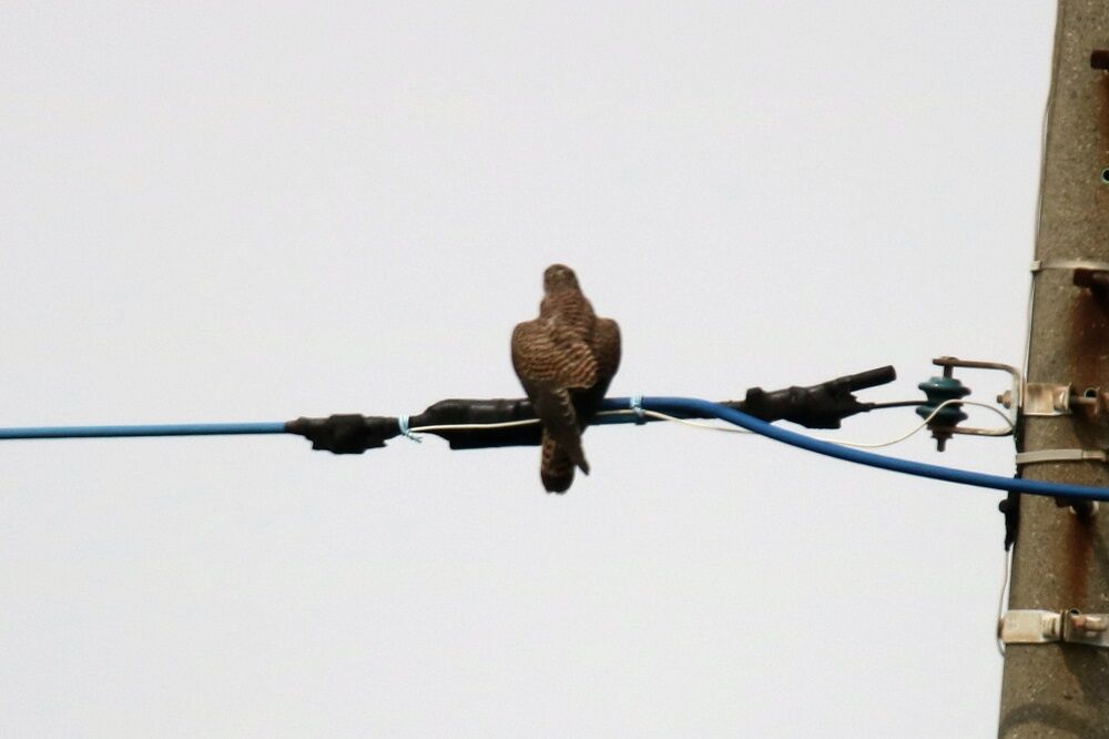 非常にきれいな個体でこんな感じのものを見るのは久々な事でした。また別の電線にはスズメが一羽のみでいました。
