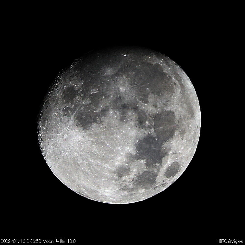 2022年02月28日 令和4(2022)年1月15-16日の天体観測 月の撮影 1月15日(土)から16日(日)にかけての天体観測です。この日は夜勤だったので、月の撮影のみを行いました。土曜日という事で空き時間を多かったので、経時的に5回の観測を行いました。この日の月齢は12.xでした。まずは出勤途中に観測・撮影した青空の中の月です。その後、以下は勤務中の空き時間に観測・撮影したものです。ここから月齢13.0になります。この日の分は以上になります。 「天体観測」カテゴリの最新記事 < 前の記事次の記事 > コメント コメントフォーム 名前 コメント 記事の評価 リセット リセット 顔 星 情報を記憶 コメントを投稿する