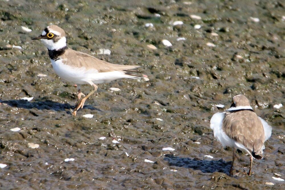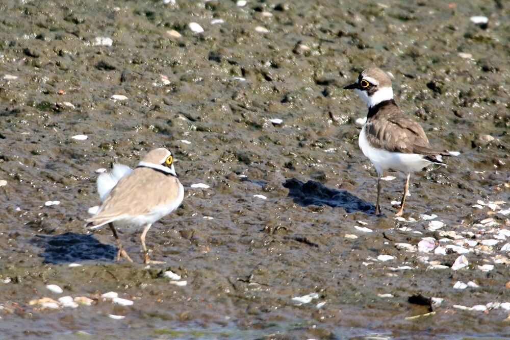 分水路の始点付近に着きました。2羽のコチドリがいました。