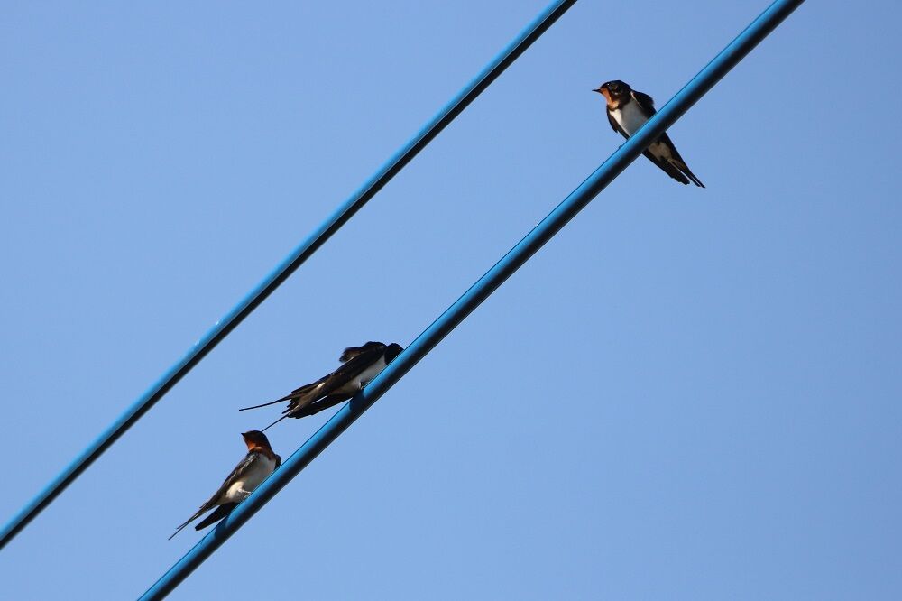 電線にはツバメが集まっていました。