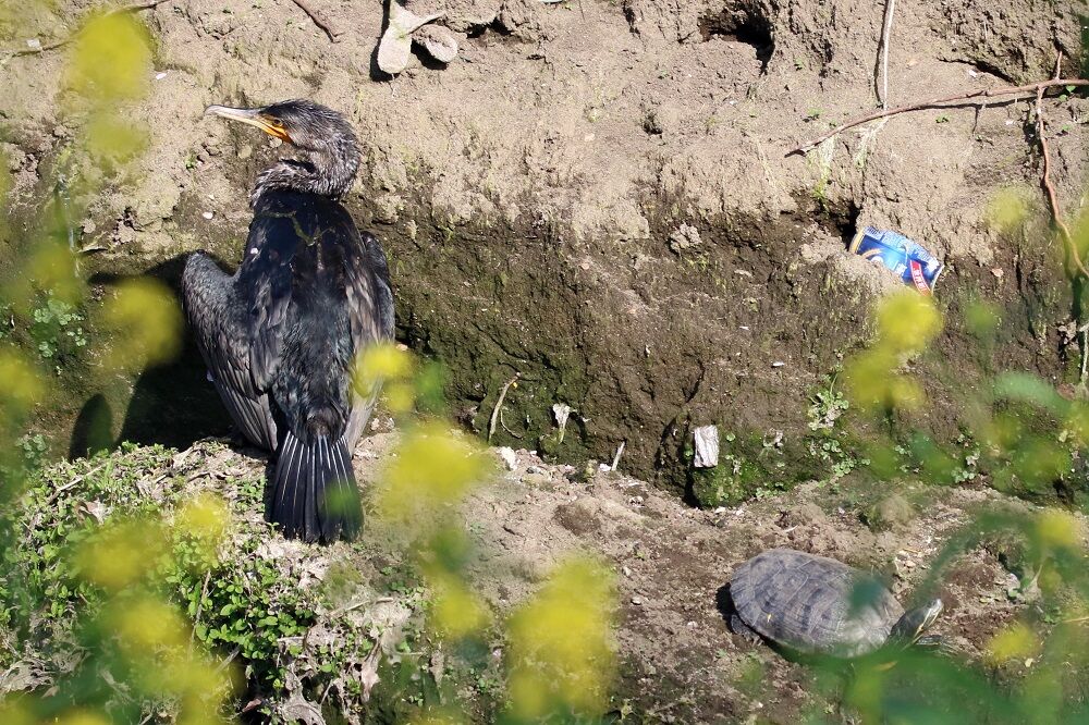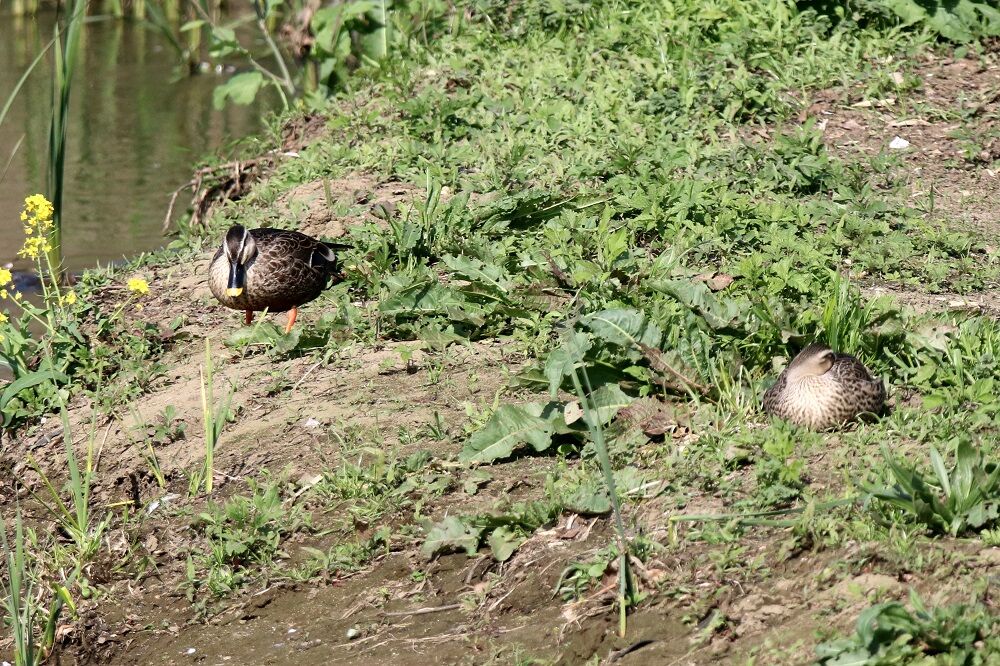 高杯橋の手前付近にはカルガモがいました。