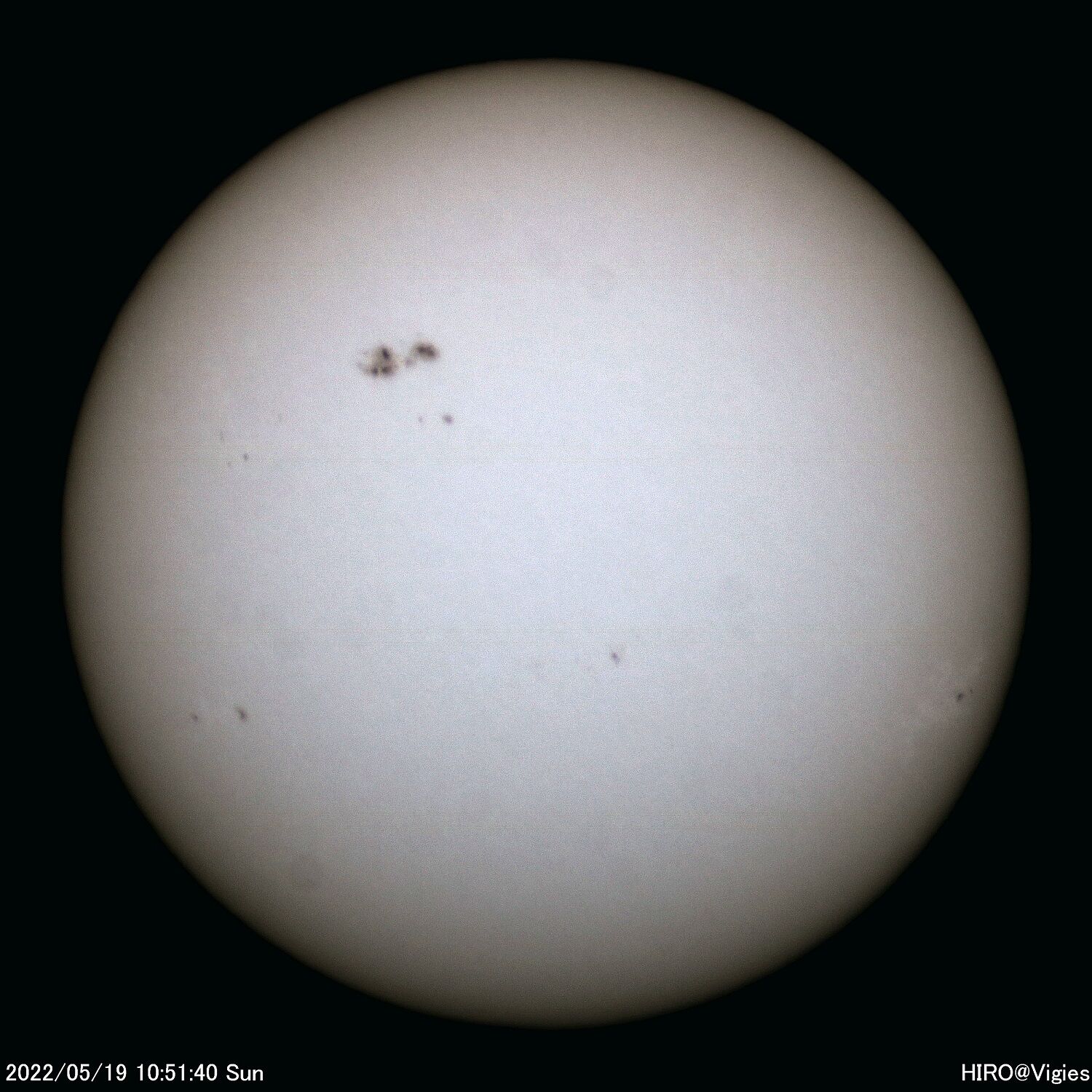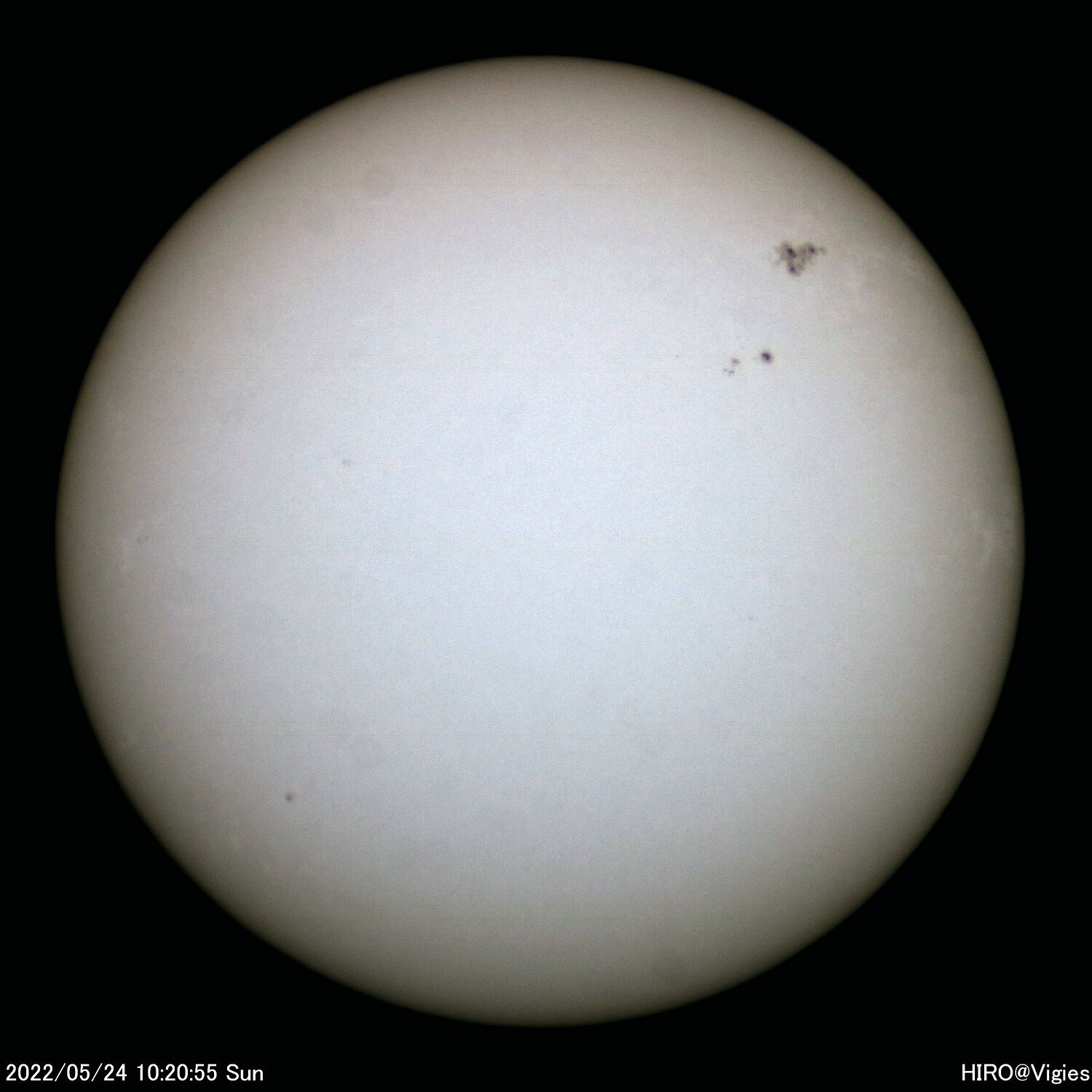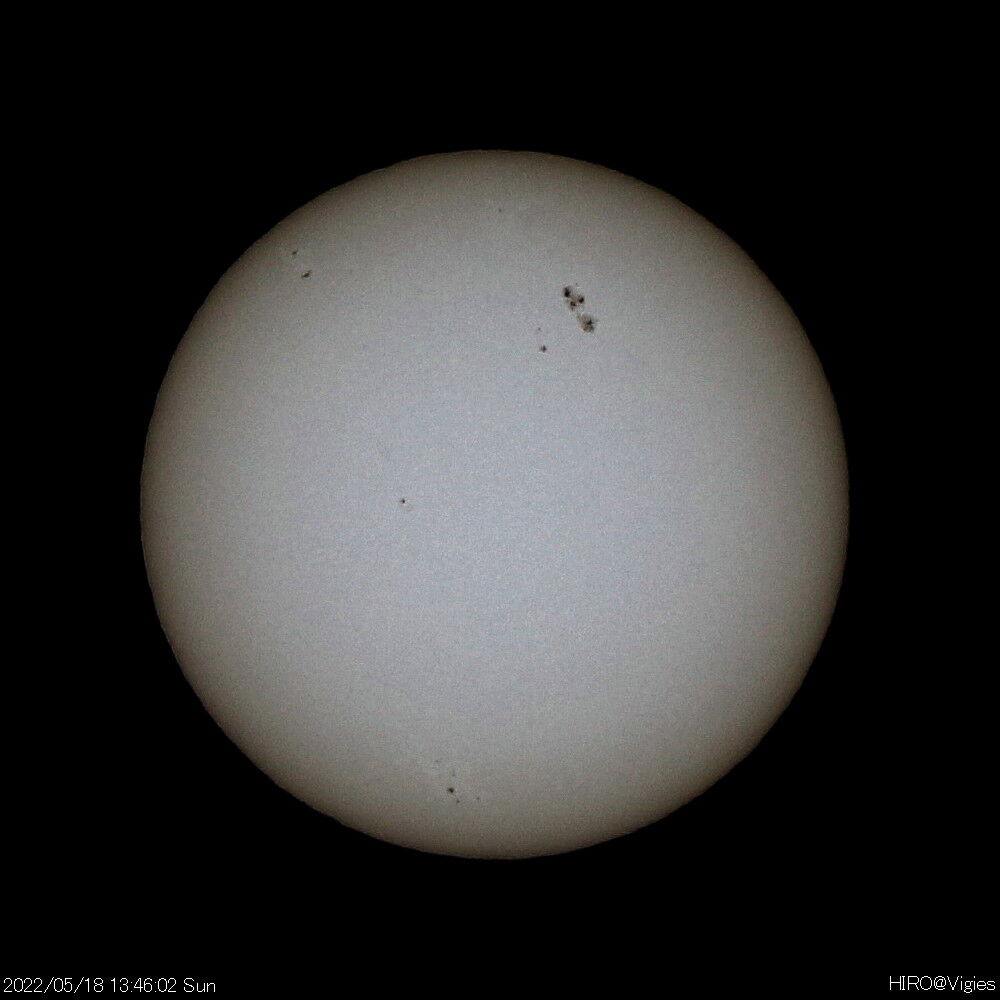 2022年07月29日 令和4(2022)年5月18-20・22-24日の太陽観測 5月18日(水)から20日(金)、22日(日)から24日(火)の太陽観測です。この期間はほぼ連日の観測が行えました。大き目の黒点、他多数の黒点が確認できました。その変化の状況もつかめます。この期間は以上になります。 「天体観測」カテゴリの最新記事 < 前の記事次の記事 > コメント コメントフォーム 名前 コメント 記事の評価 リセット リセット 顔 星 情報を記憶 コメントを投稿する
