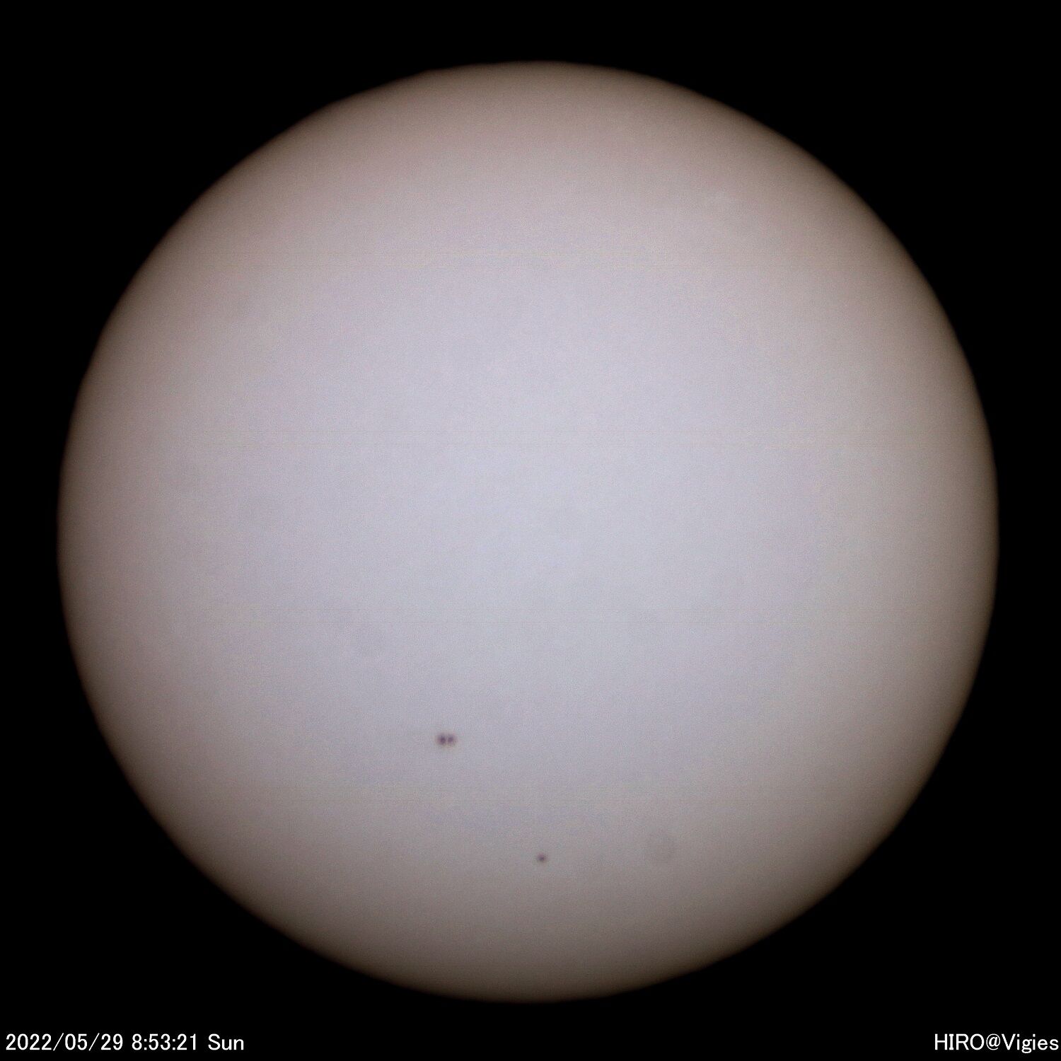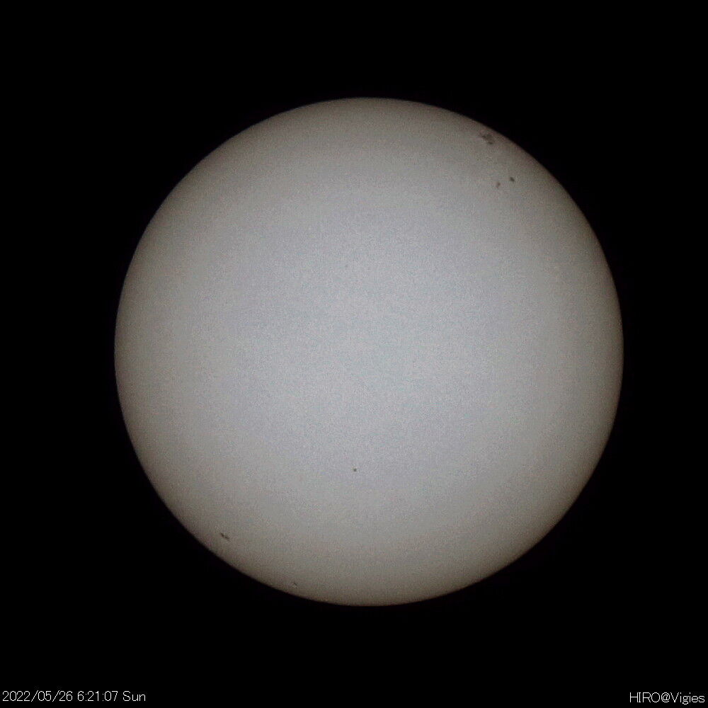 2022年07月31日 令和4(2022)年5月25ー29日の太陽観測 5月25日(水)から29日(日)の太陽観測です。この期間は毎日黒点が見えている状況で自転の影響による黒点の移動が見られました。この期間は以上になります。 「天体観測」カテゴリの最新記事 < 前の記事次の記事 > コメント コメントフォーム 名前 コメント 記事の評価 リセット リセット 顔 星 情報を記憶 コメントを投稿する