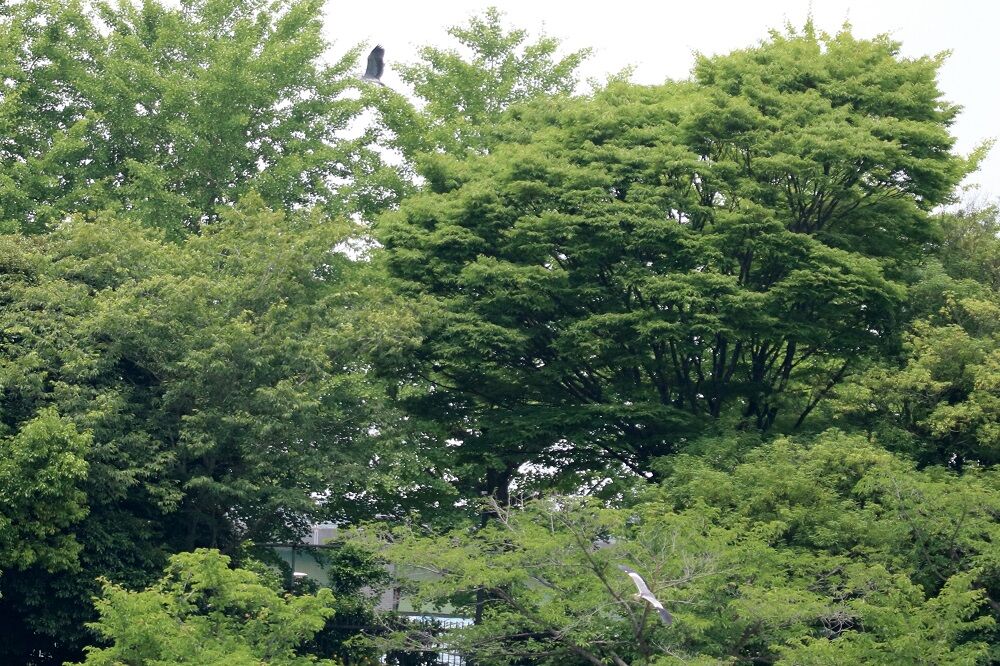 先ほどのアオサギは池に入ろうとしたら別の個体に追いかけられる羽目になりました。