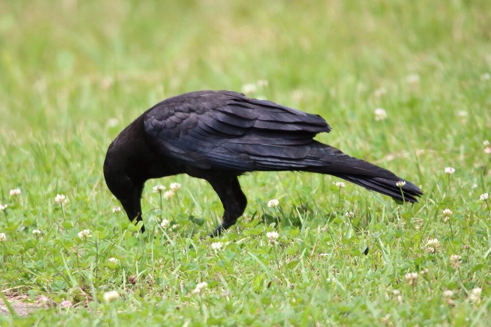 芝生の上にはカラスがいました。