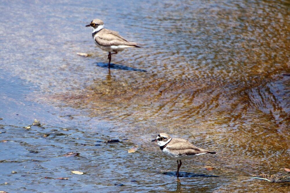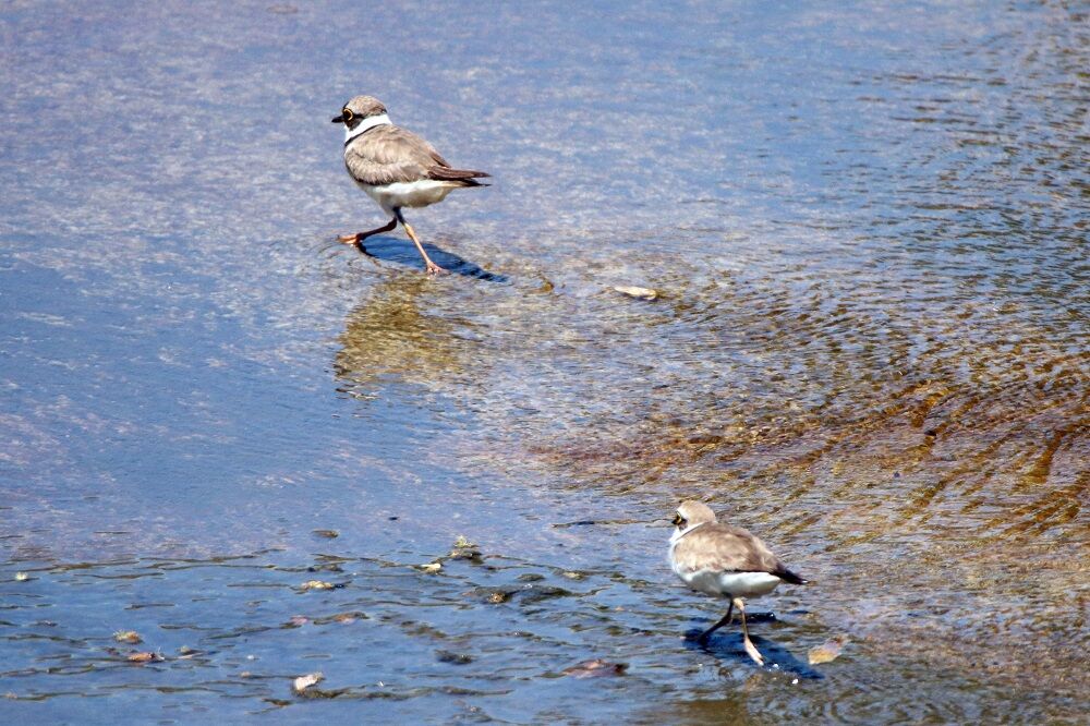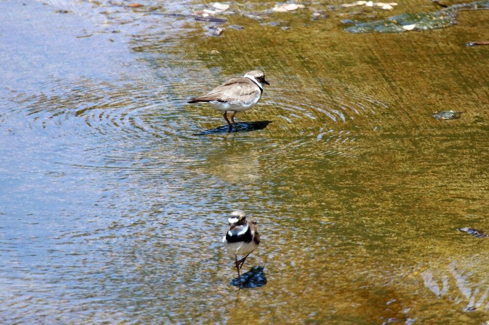 分水路の奥に来ました。馬川橋から下流側を見ると2羽のコチドリの成鳥がいました。