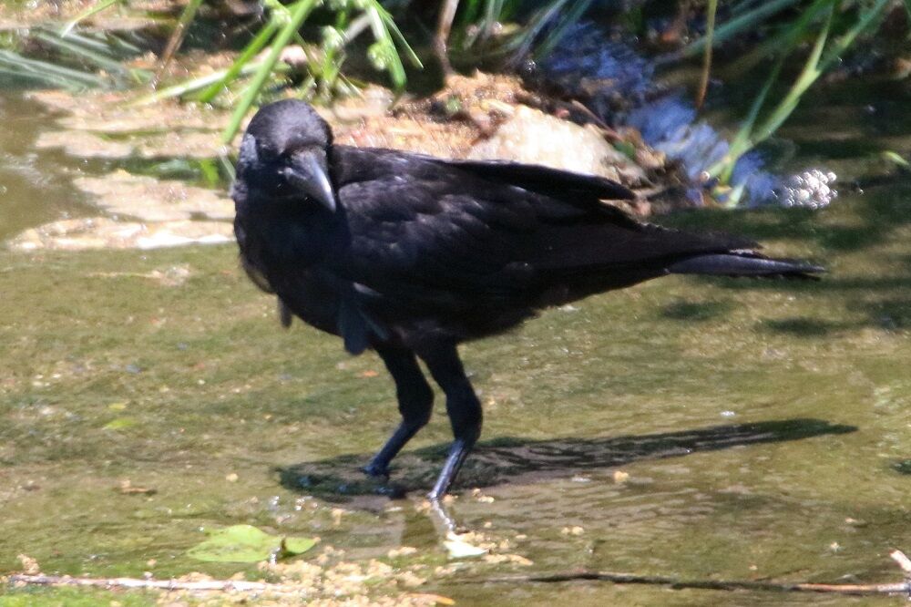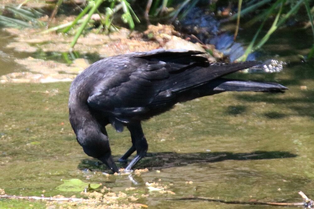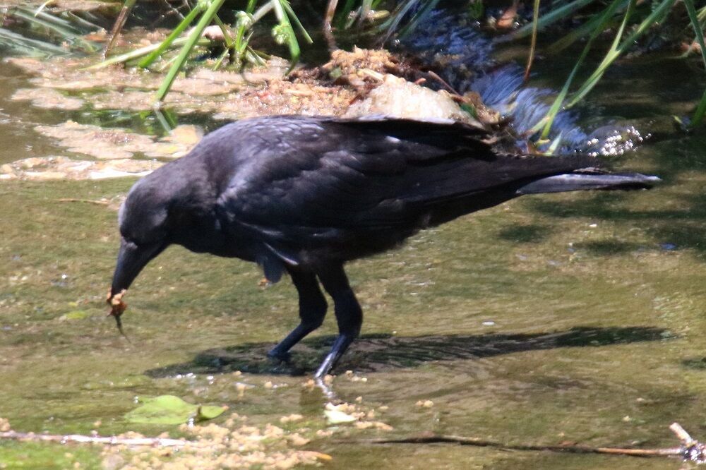 電線にはカワウがいました。そして、カラスも分水路に入りました。