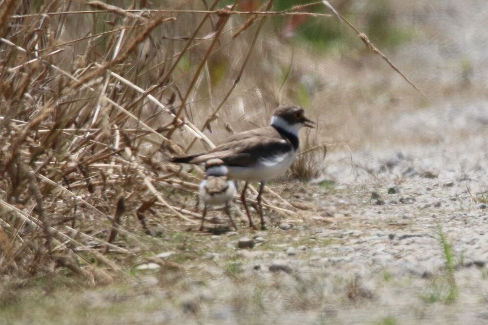 分水路の奥に続く農道から入りました。いつも通りにコチドリがいました。小さいヒナもいました。