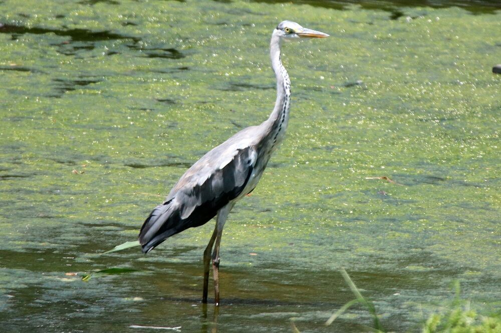 何か違和感を感じるアオサギがいました。そして、もう一羽コチドリがいました。