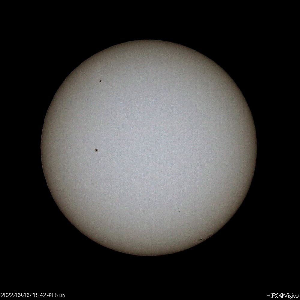 2022年11月24日 令和4(2022)年9月4・5日の太陽観測 9月4日(日)、5日(月)の太陽観測です。活発な黒点が見られますが、そろそろ裏側に回ってしまいそうな感じです。この日は以上になります。 「天体観測」カテゴリの最新記事 < 前の記事次の記事 > コメント コメントフォーム 名前 コメント 記事の評価 リセット リセット 顔 星 情報を記憶 コメントを投稿する