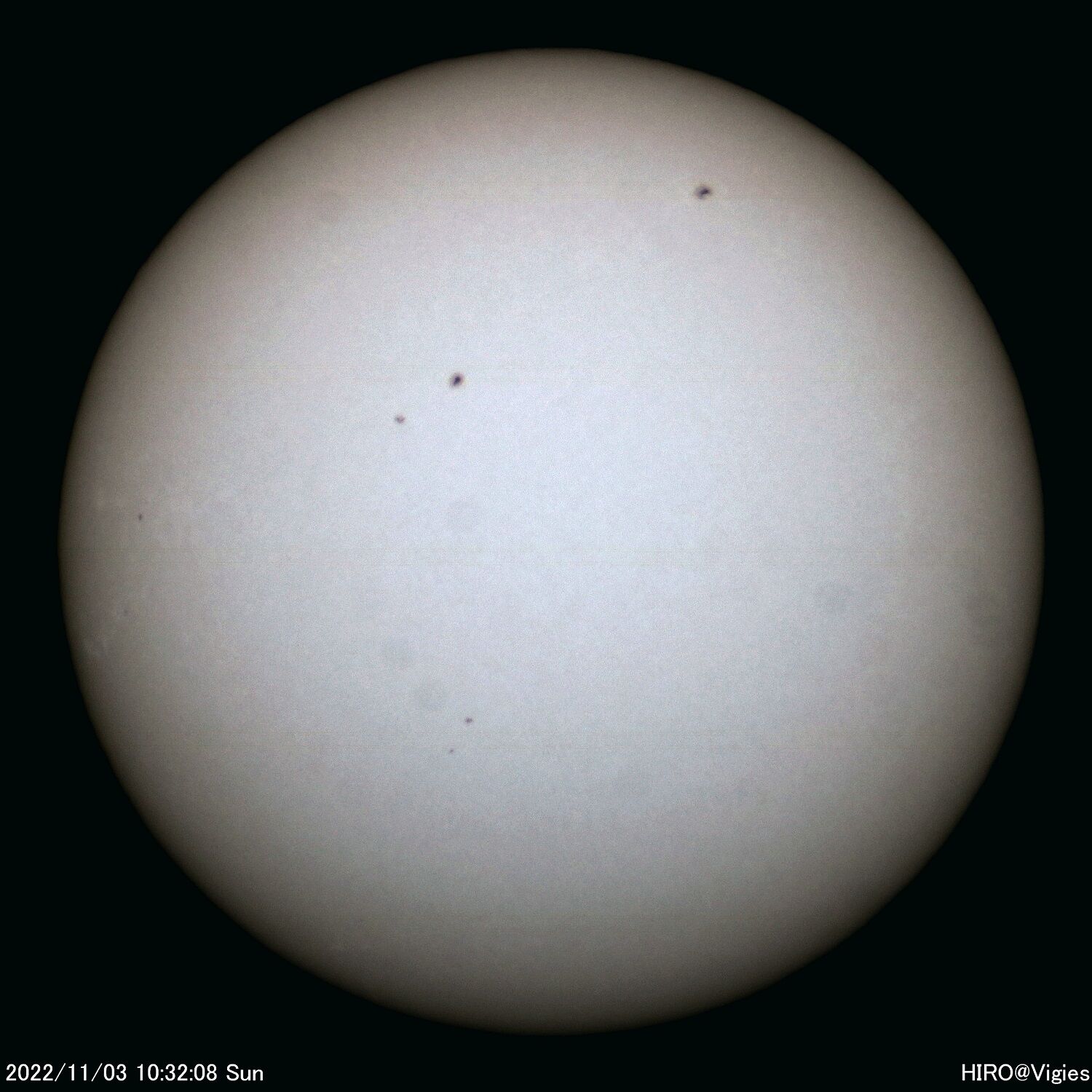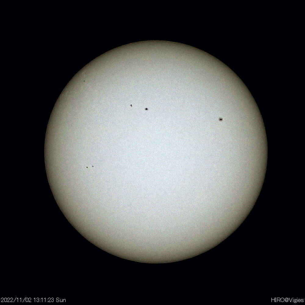 2023年01月29日 令和4(2022)年11月2・3日の太陽観測 11月2日(水)、3日(木)の太陽観測です。多数の小さな黒点が見えている感じでした。白斑も確認できます。この日は以上になります。 「天体観測」カテゴリの最新記事 < 前の記事次の記事 > コメント コメントフォーム 名前 コメント 記事の評価 リセット リセット 顔 星 情報を記憶 コメントを投稿する