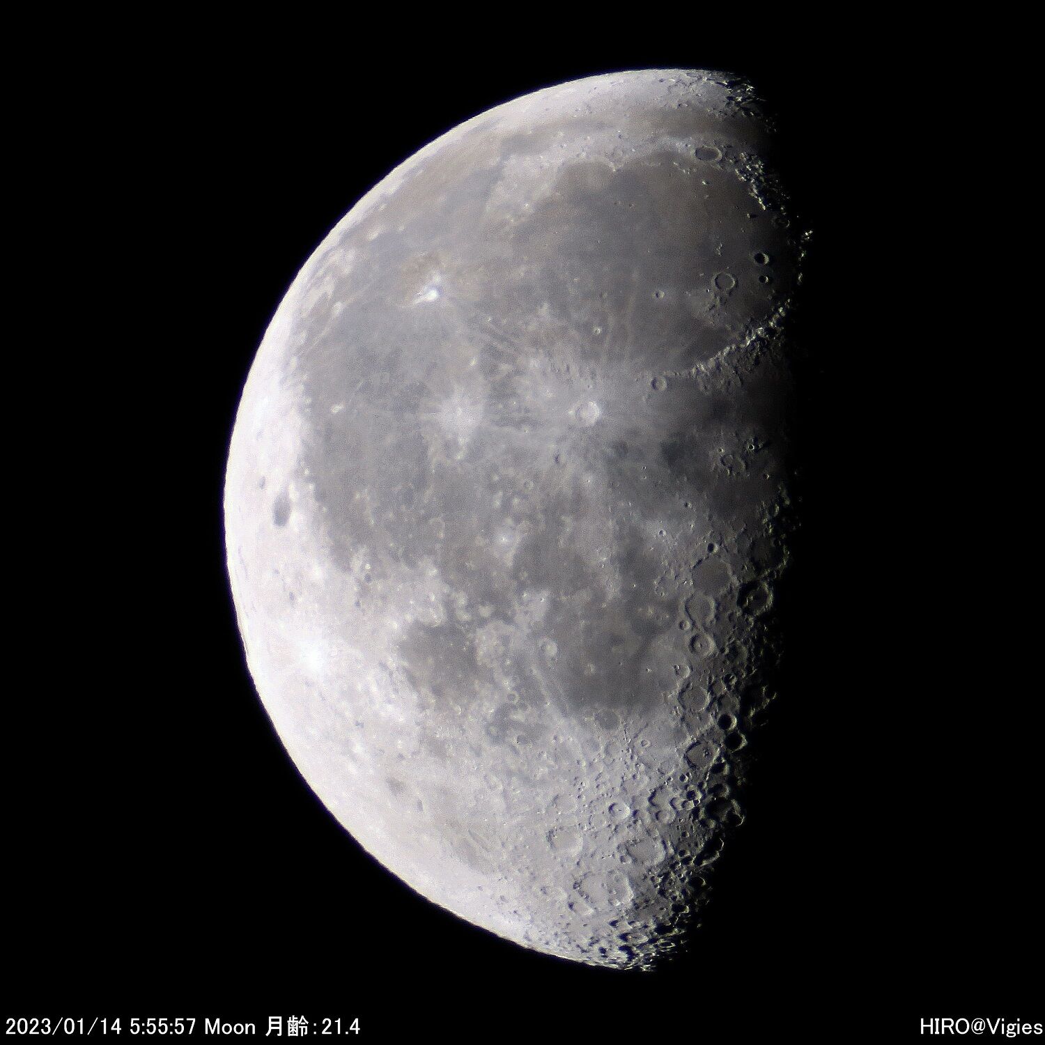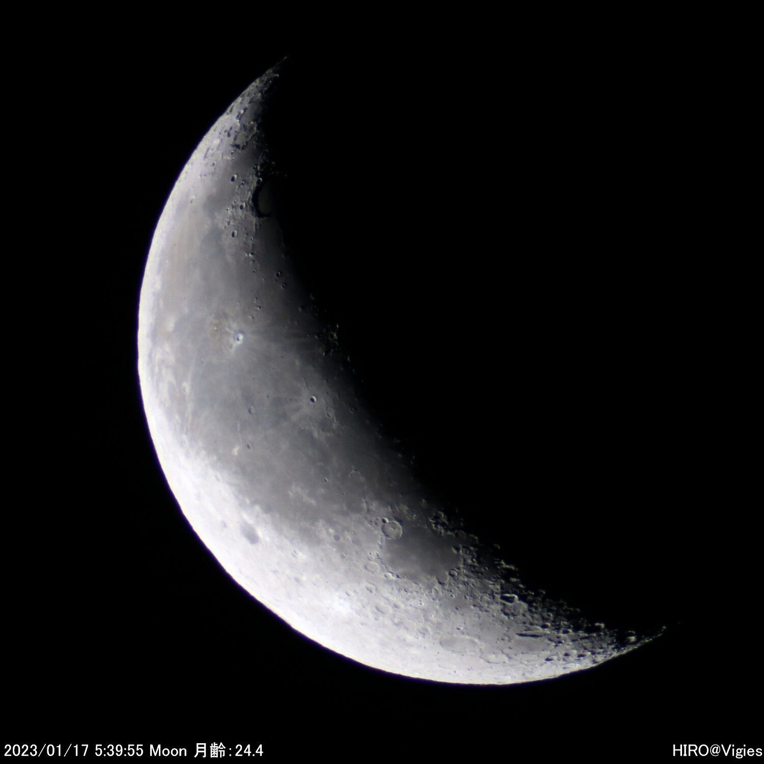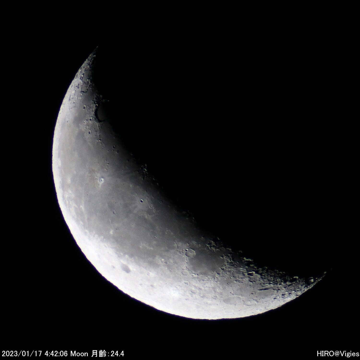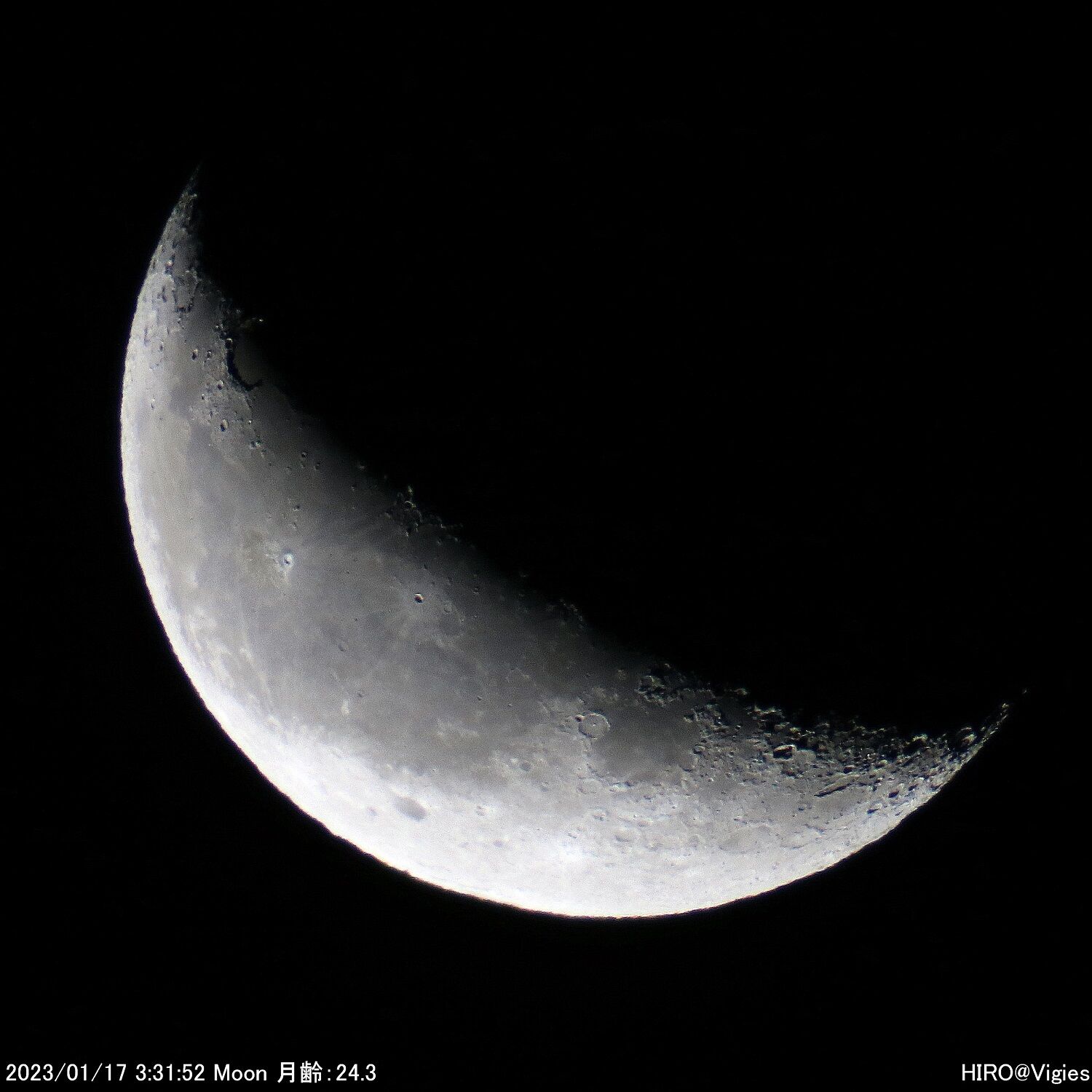 2023年04月28日 令和5(2023)年1月14・17の天体観測 月の直焦点撮影 1月14日(土)、17日(火)の天体観測です。この両日は月の直焦点撮影を行いました。天気の影響で太陽観測を含めて、観測できない日が続きました。まずは14日の朝方分です。この日の月齢は21.xでした。次に17日分です。この日の月齢は24.xでした。この日の分は以上になります。 「天体観測」カテゴリの最新記事 < 前の記事次の記事 > コメント コメントフォーム 名前 コメント 記事の評価 リセット リセット 顔 星 情報を記憶 コメントを投稿する