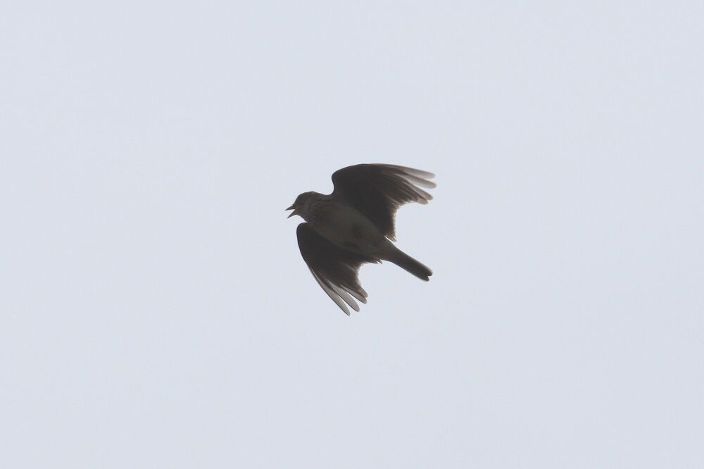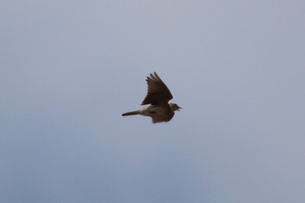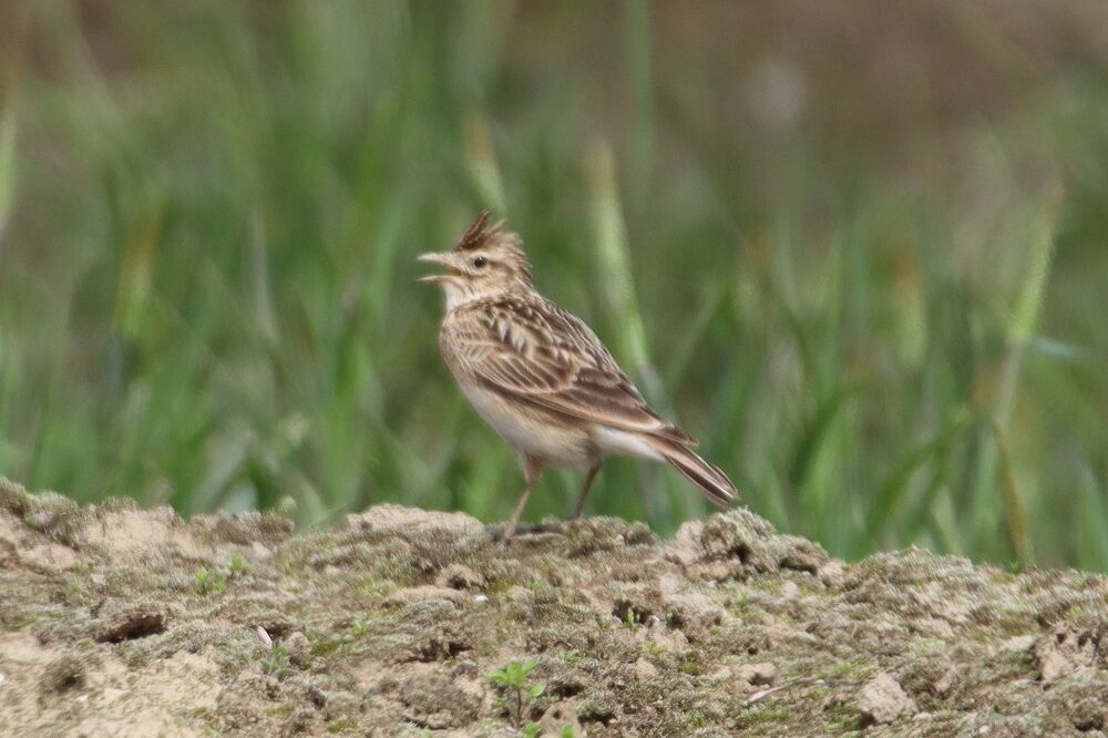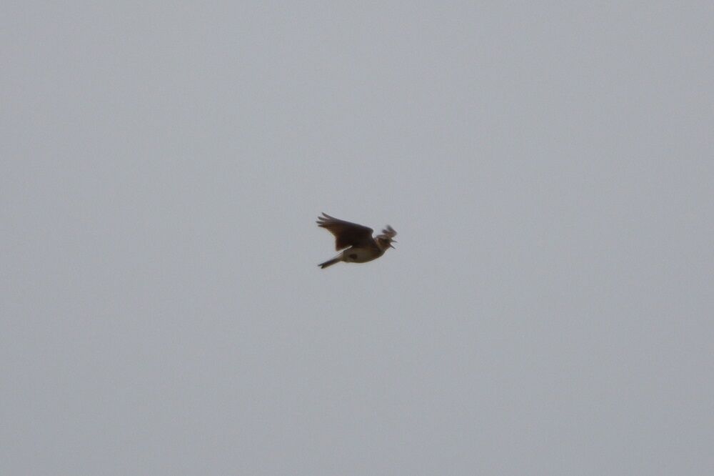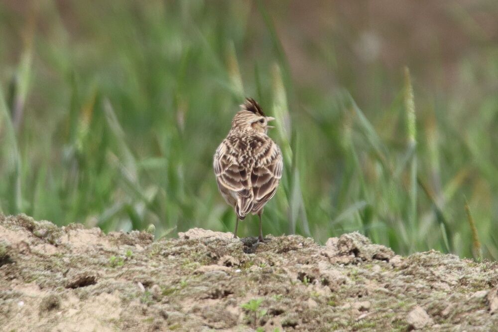 ヒバリが冠羽を立てて大声で鳴いていました。