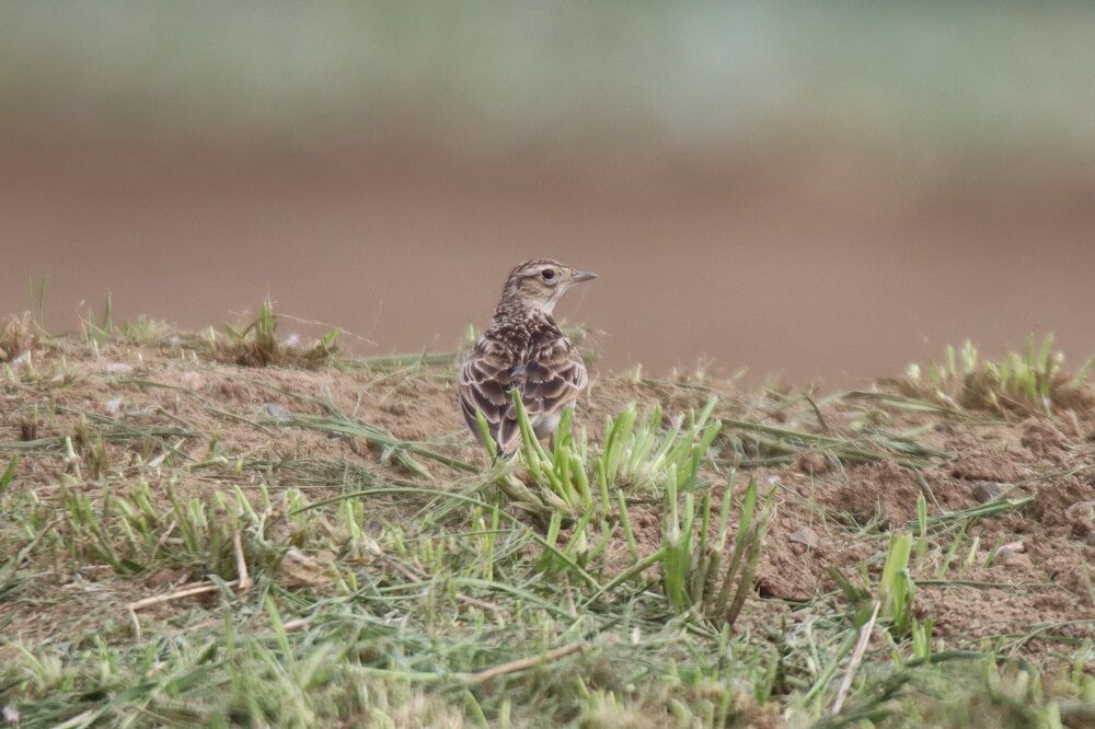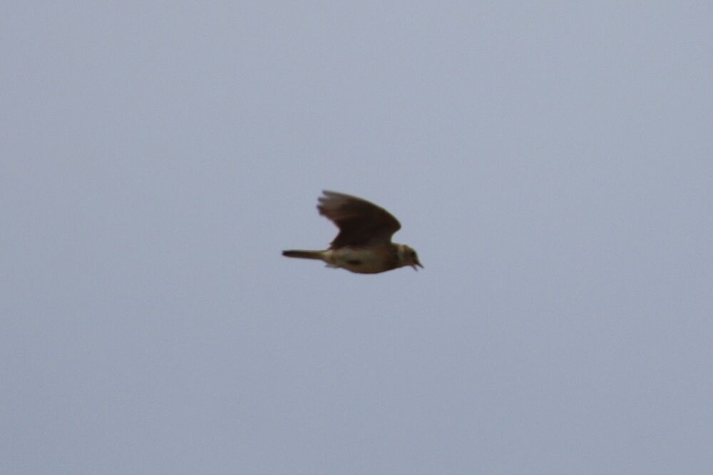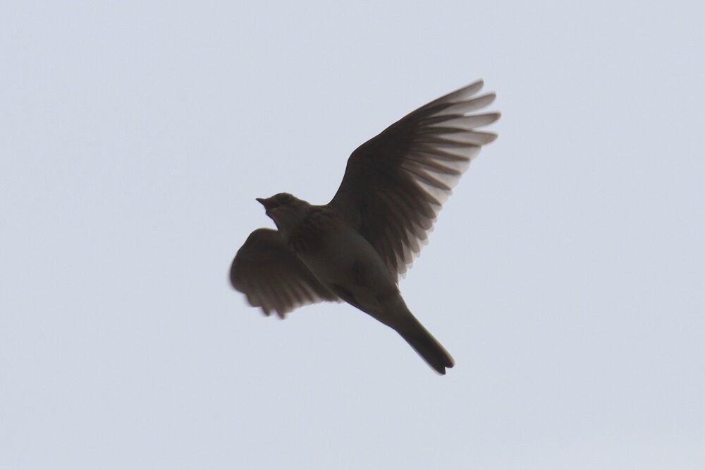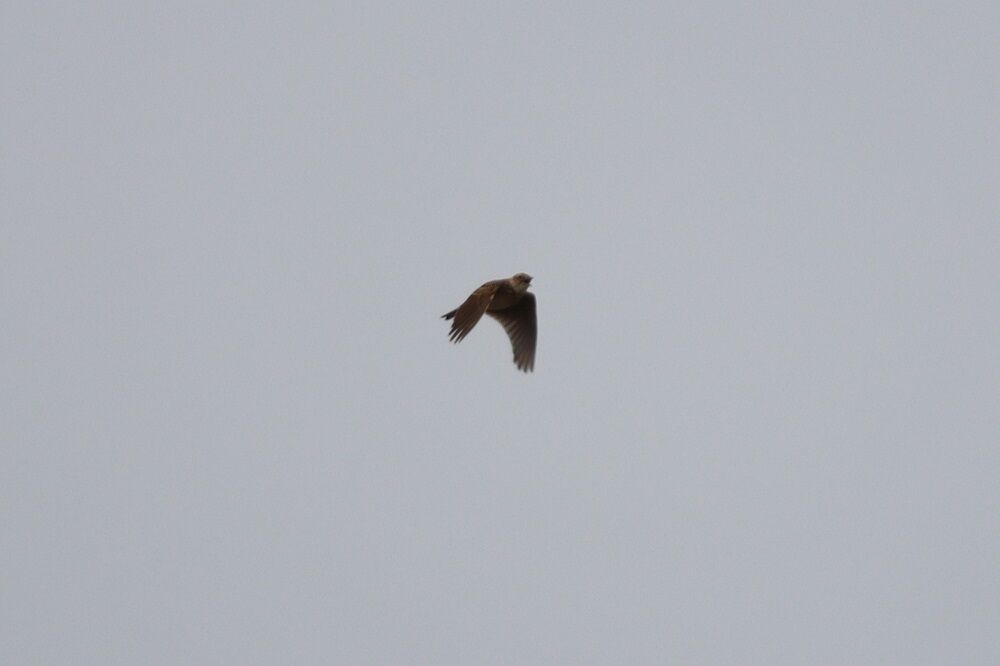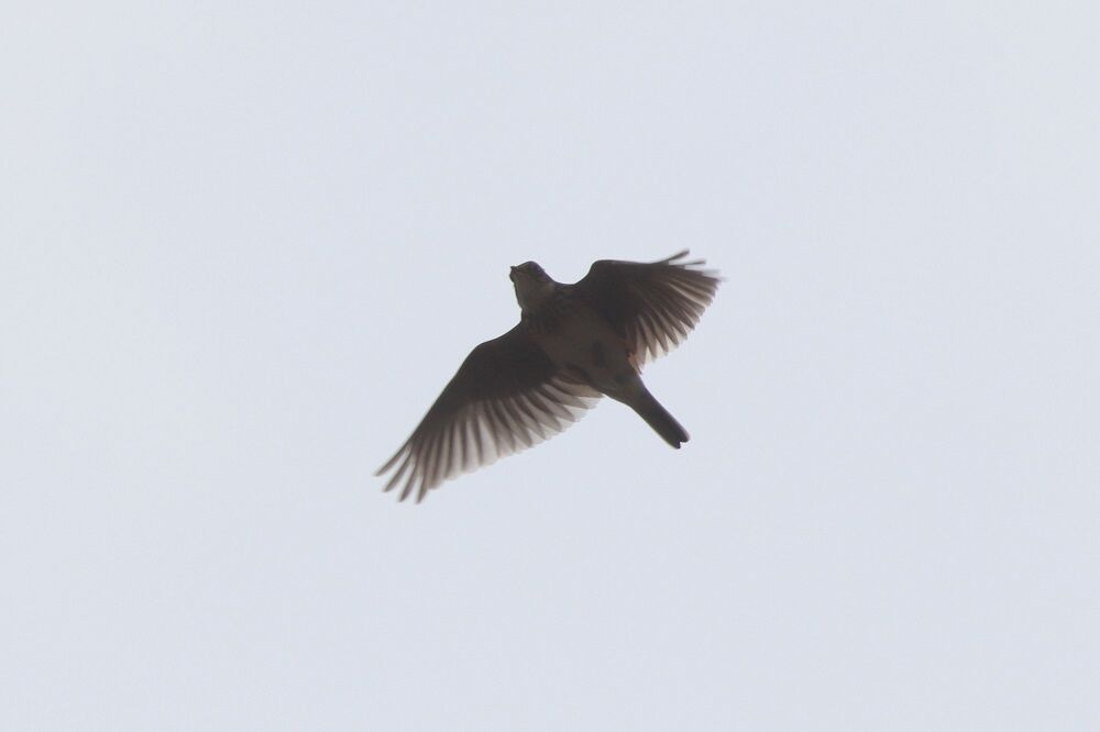 ヒバリが冠羽を立てて大声で鳴いていました。