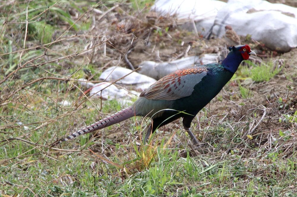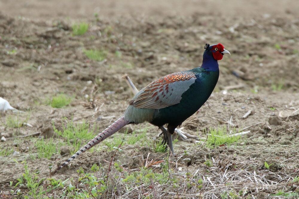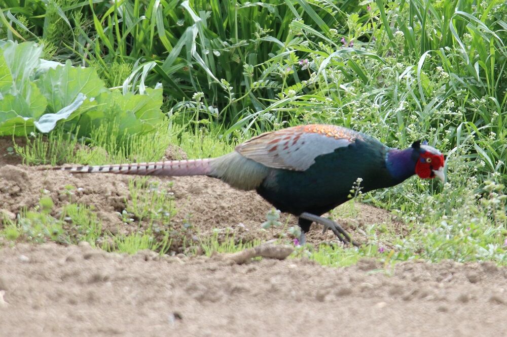 畑の中にはキジのオスがいました。颯爽と歩いていきました。
