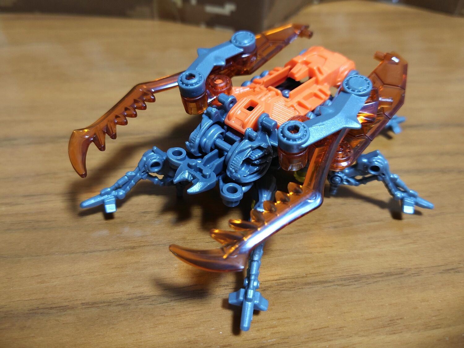 そして、組立に入り、いつも以上に早く骨格形態復元完了です。以前に作成したクワーガもそうでしたが、この状態では頭部に牙がないので、物足りない感じです。そして、アーマ関連のパーツを取り付けて頭部に牙がついてクワガタムシらしくなりました。