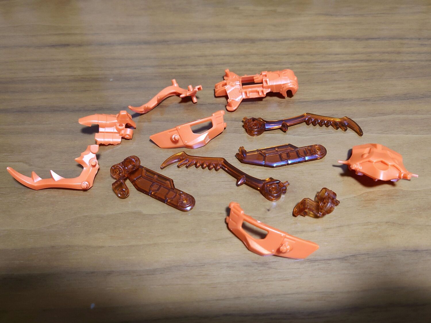 発掘パックBはアーマ関連のパーツになります。ちょっと表現しにくい赤っぽいパーツとクリアーブラウンのパーツが入っています。