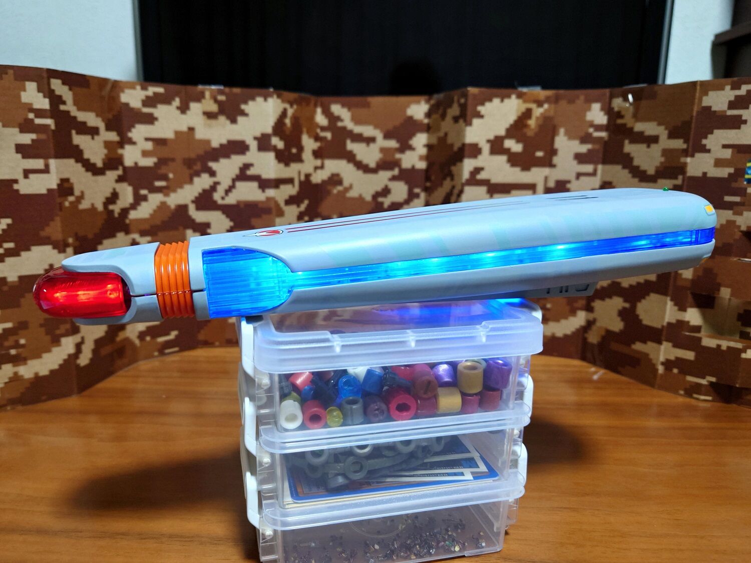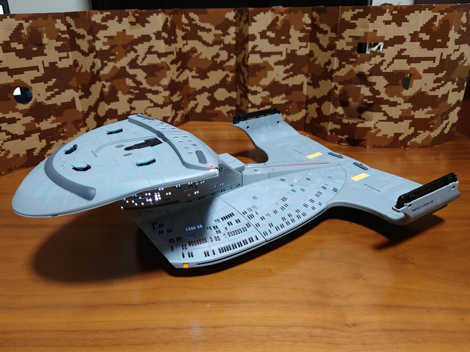 そして、組立に入り、まずは右舷ワープナセルの組立を実施し、完成しました。電飾が正常に点灯する事を確認しました。