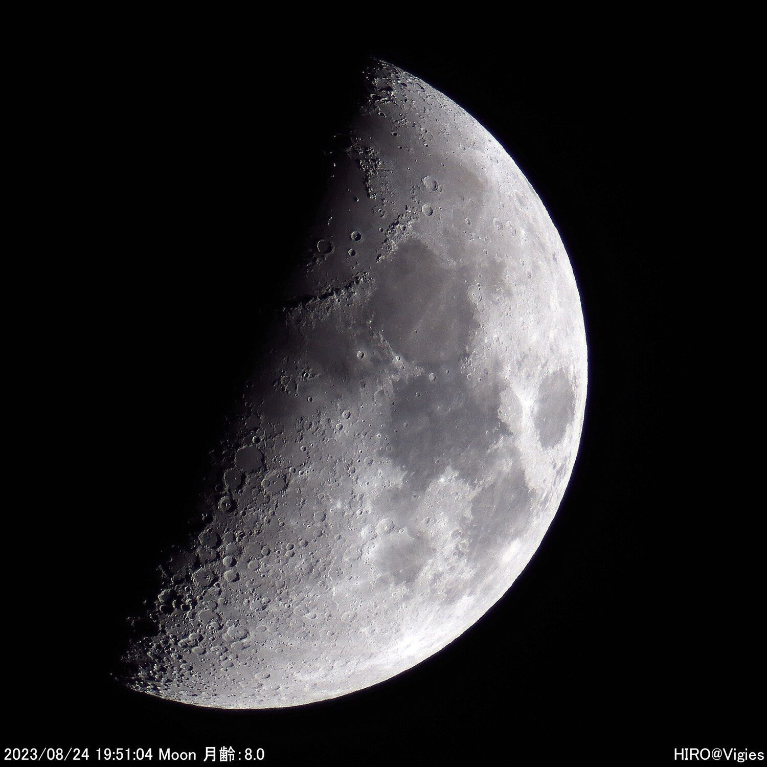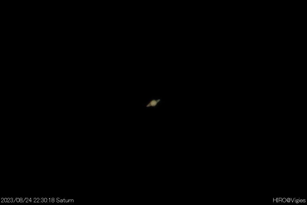 2024年04月21日 令和5(2023)年8月24日の天体観測 月・土星の直焦点撮影 8月24日(木)の天体観測です。この日は月と土星の直焦点撮影を行いました。まずは、月の直焦点撮影です。明るい時間帯から暗くなるまで経時的に7回の観測・撮影を行いました。以下の4枚は月齢7.xです。以下、月齢8.0となります。やはり暗くなってからの方が鮮明に月の表面構造を確認する事ができます。この日は土星も直焦点撮影を行いましたが、やはち小さくなってしまいますが、環があることで土星である事は分かります。この日は以上になります。 「天体観測」カテゴリの最新記事 < 前の記事次の記事 > コメント コメントフォーム 名前 コメント 記事の評価 リセット リセット 顔 星 情報を記憶 コメントを投稿する
