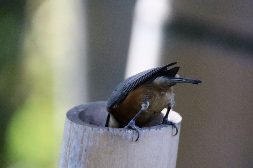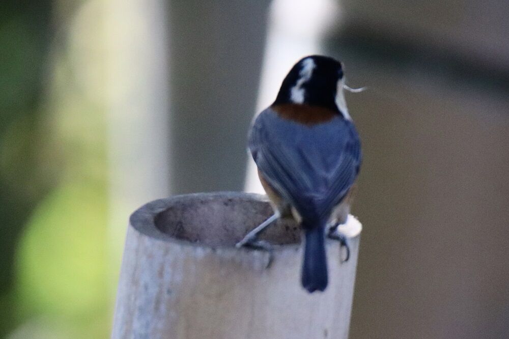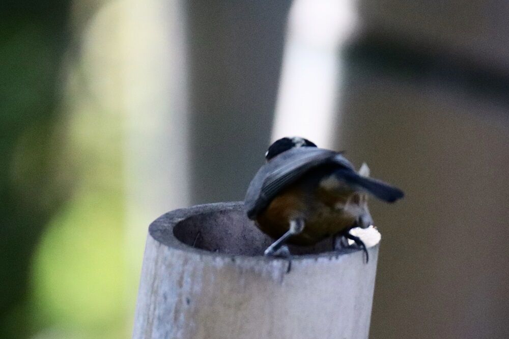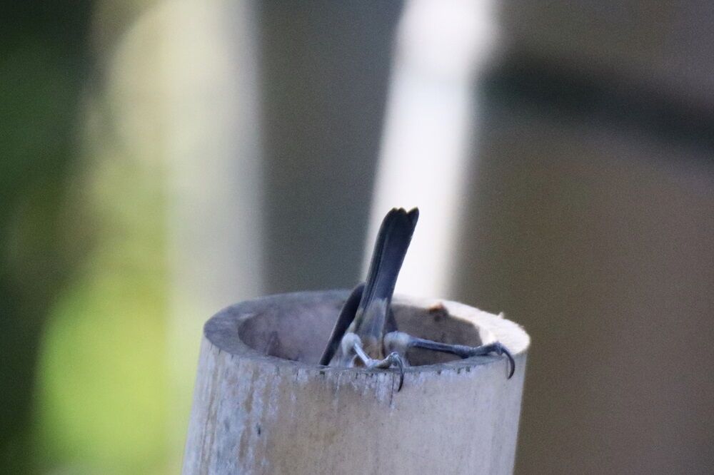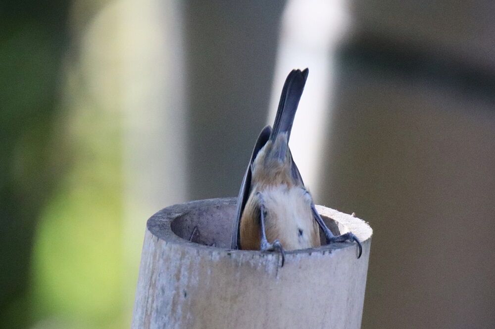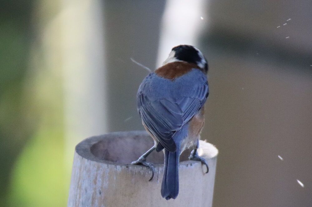 その後、ブルブルっとすると水飛沫が飛びます。竹の中に溜まった水を飲んでいたのか、軽い水浴びをしたのでしょうか。