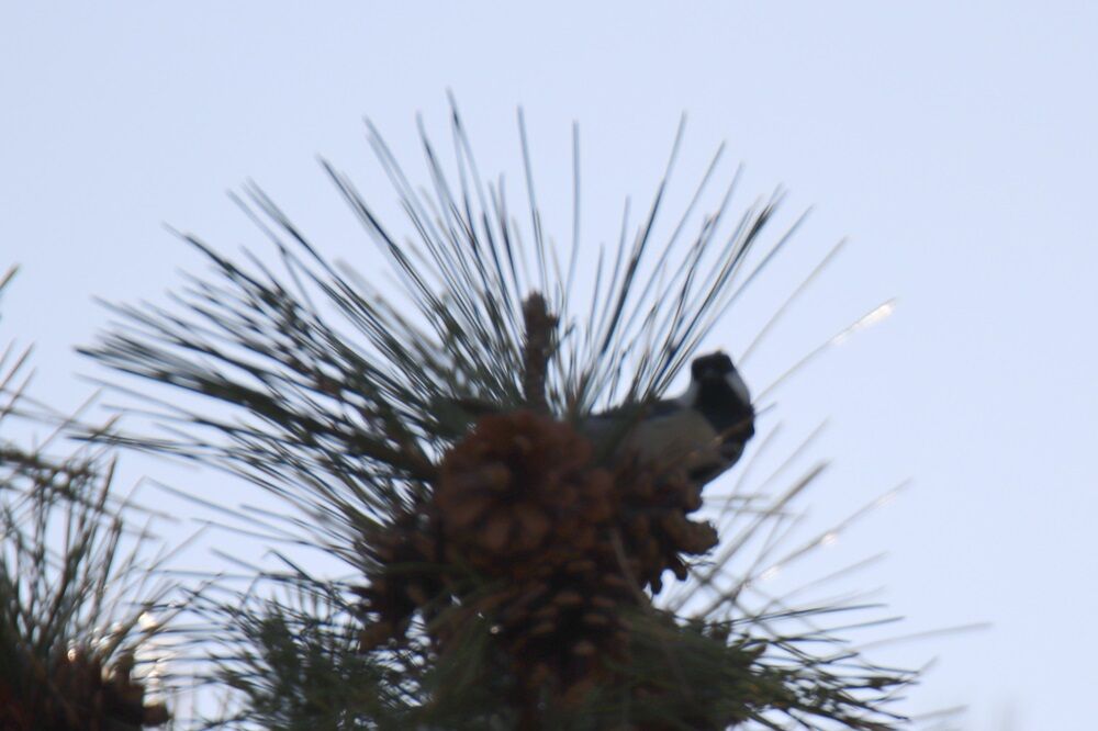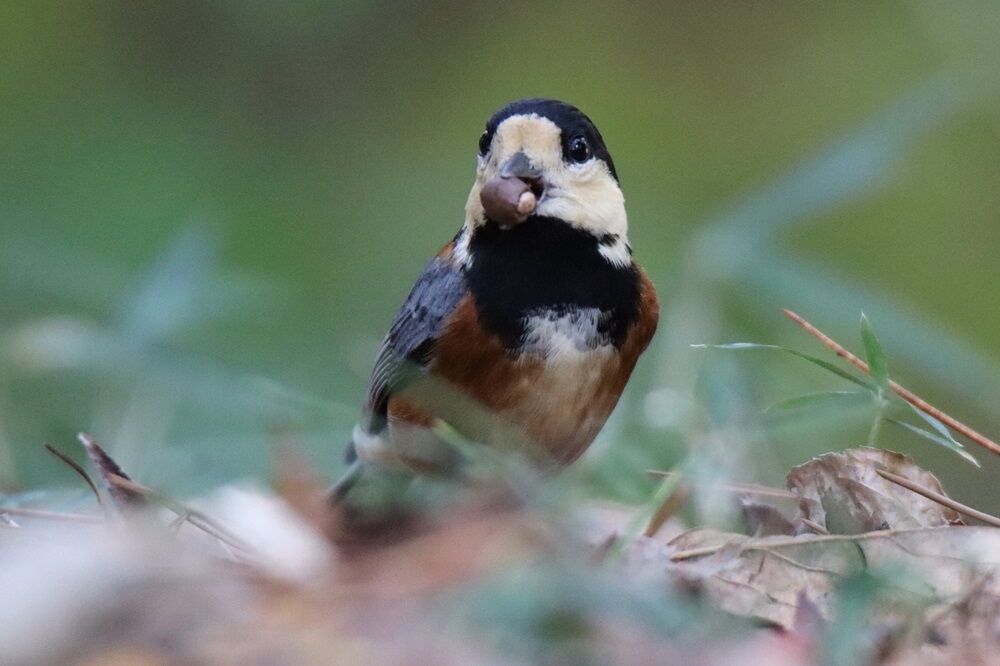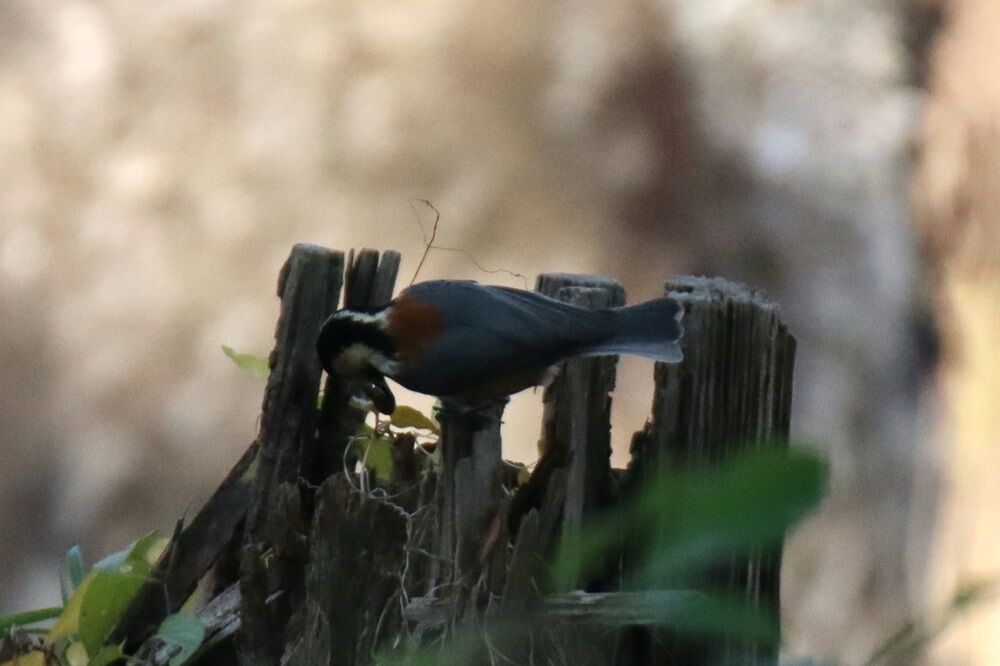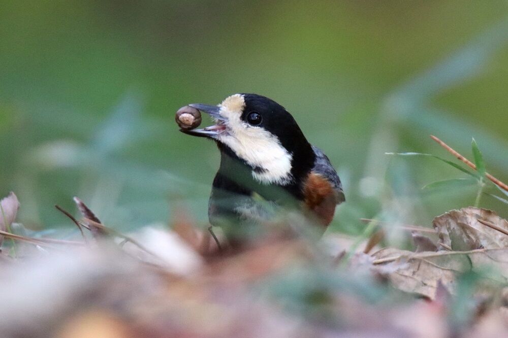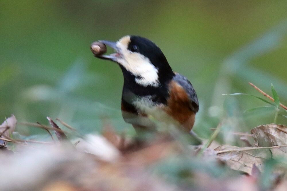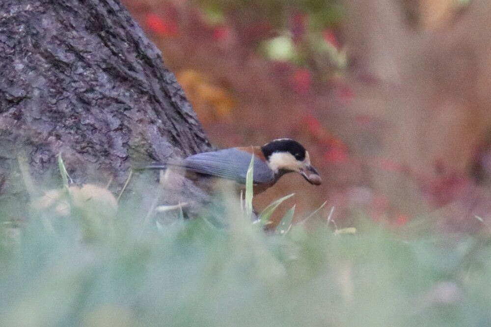 では、鳥に戻ります。かなり低いところでドングリを嘴に咥えたヤマガラがいました。