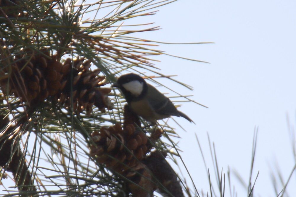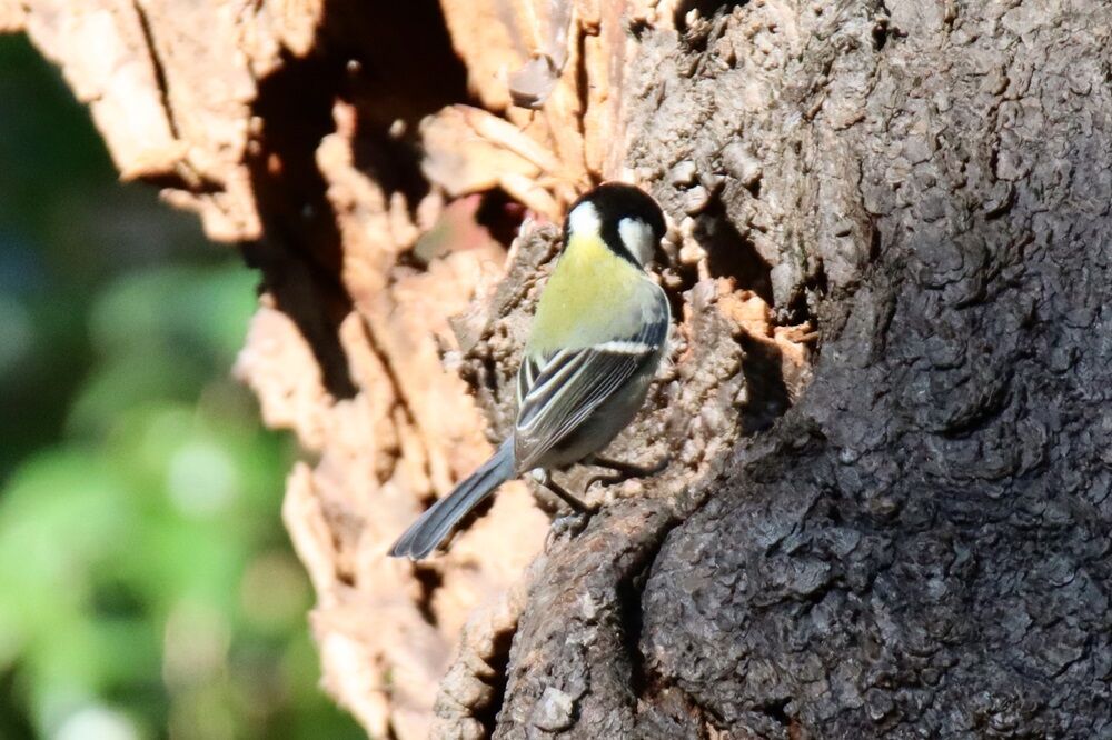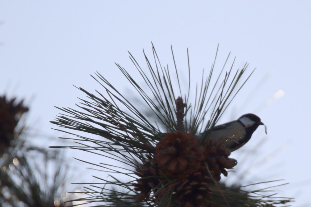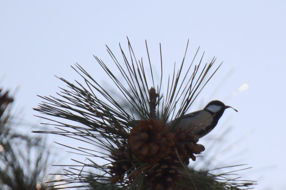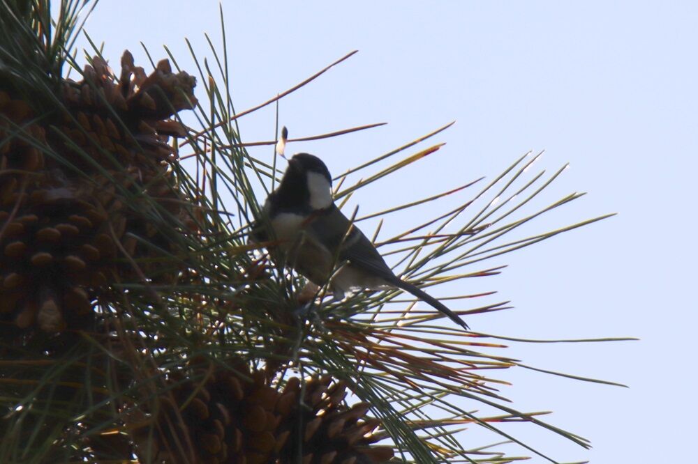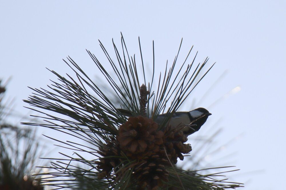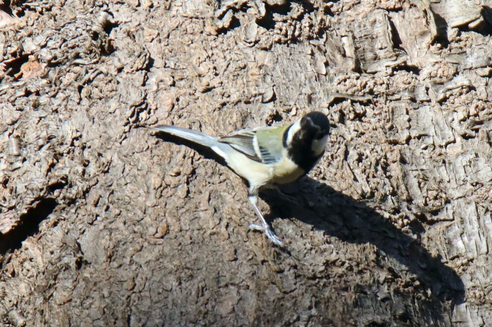 では、鳥に戻ります。かなり低いところでドングリを嘴に咥えたヤマガラがいました。