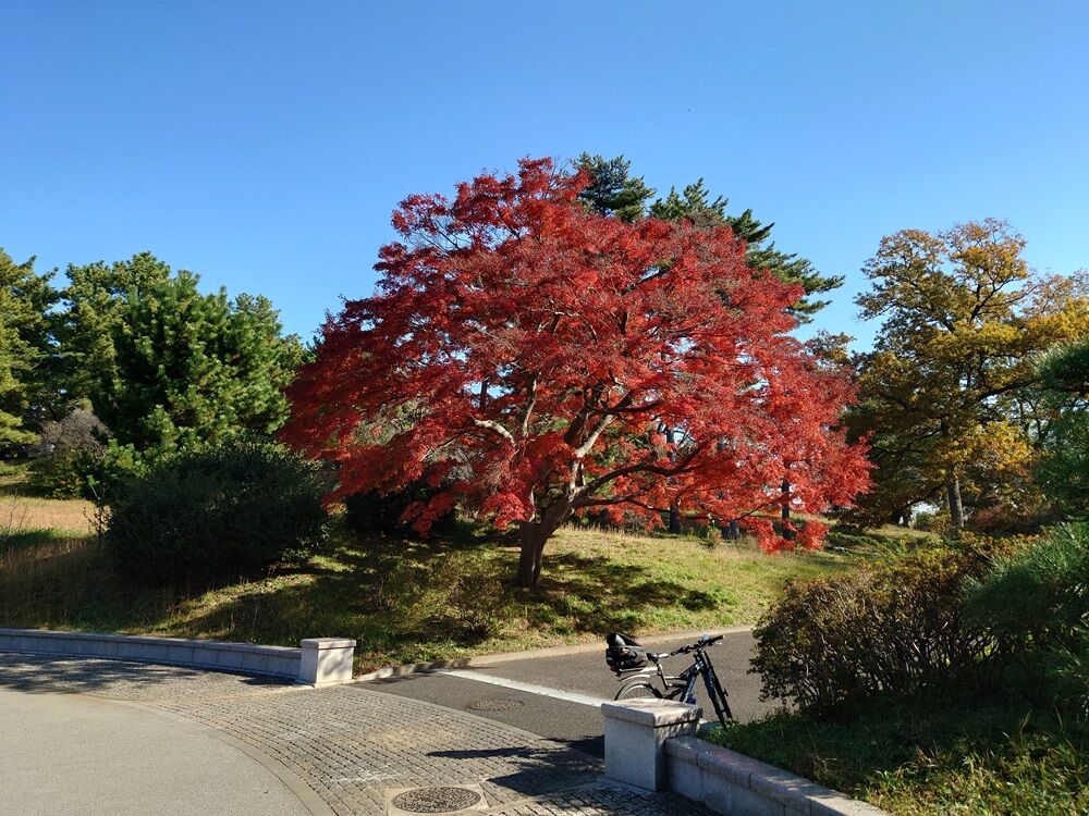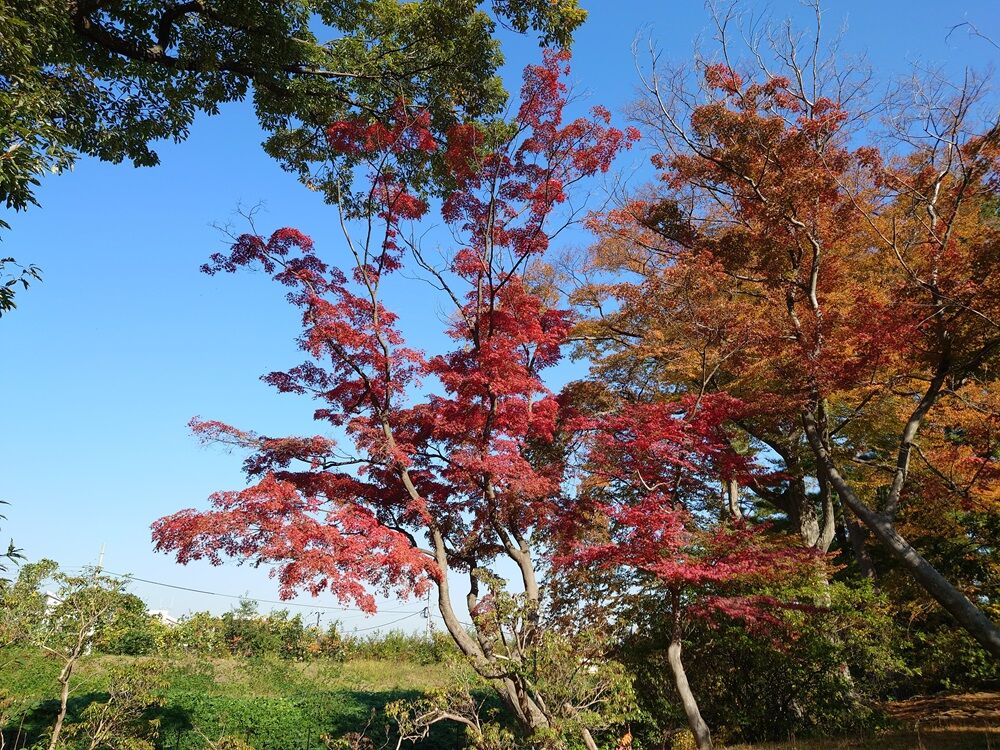 鳥とは離れて霊園内の紅葉です。離れてみるときれいな紅葉に見えるのですが、近づいてみると葉先が枯れていたりするものが多々と見られました。