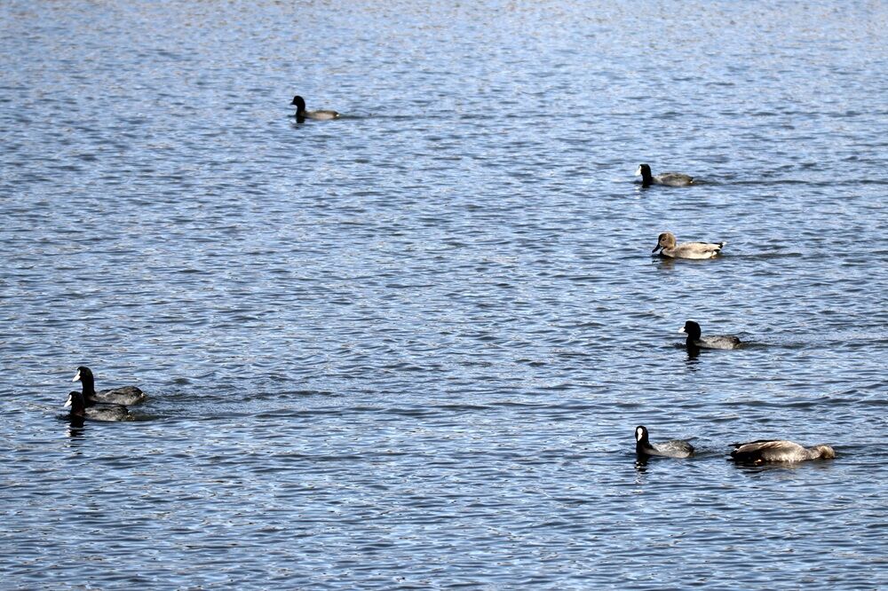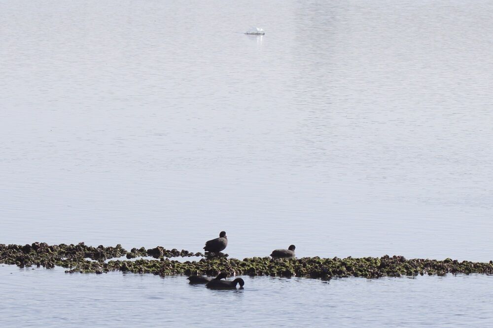 干潮で陸地になった箇所にはオオバンが数羽いました。