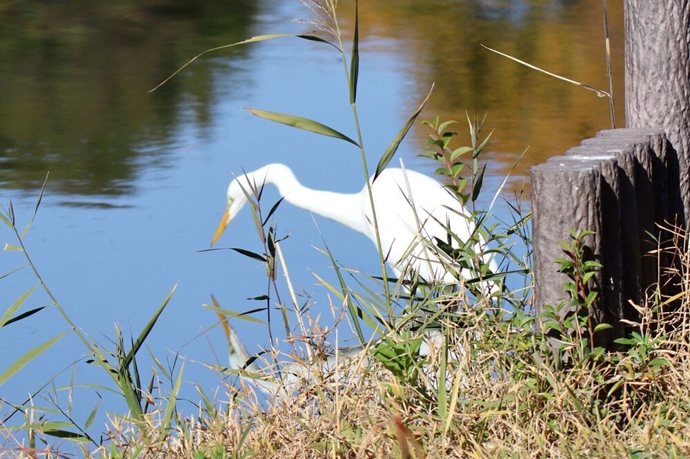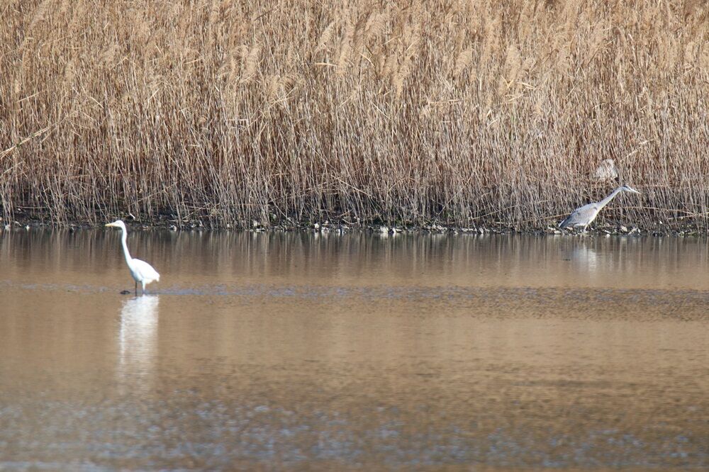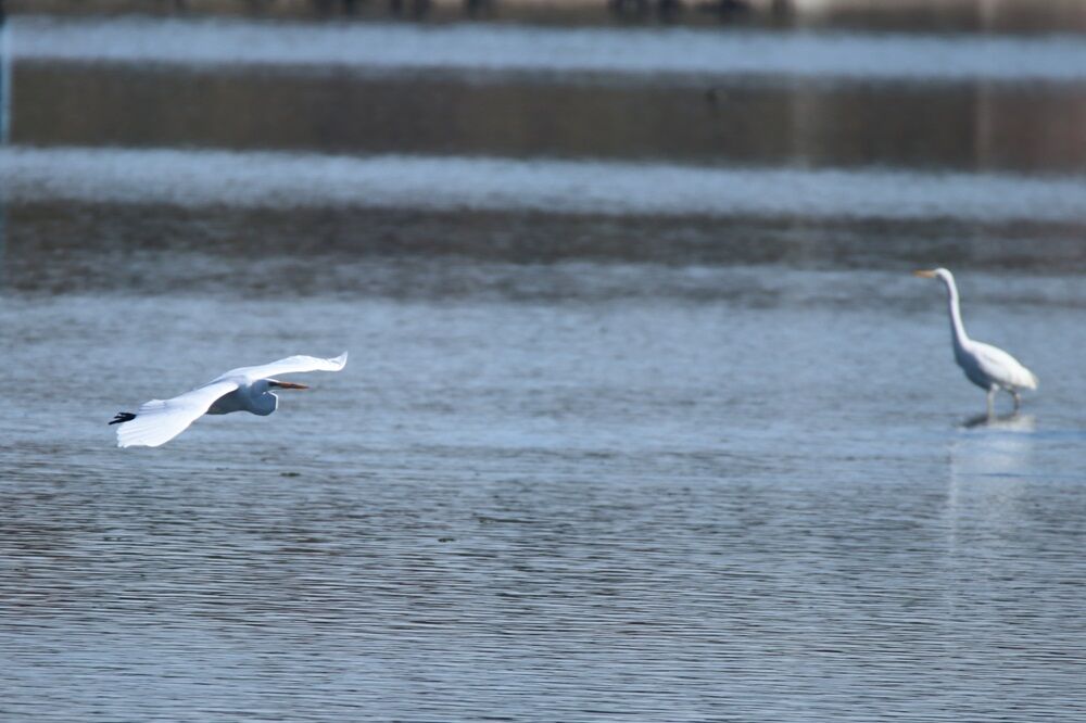 淡水池の観察窓のところに来ました。ダイサギが動き回ります。