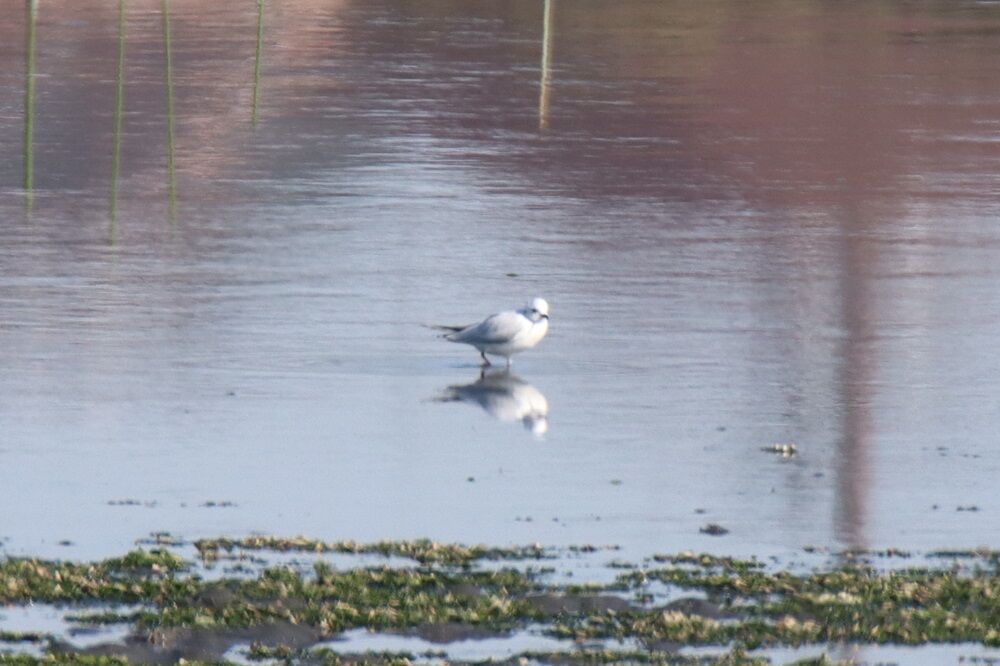 自然観察センターの干潟全体が見渡せる窓のところに来ました。サギたちがいました。