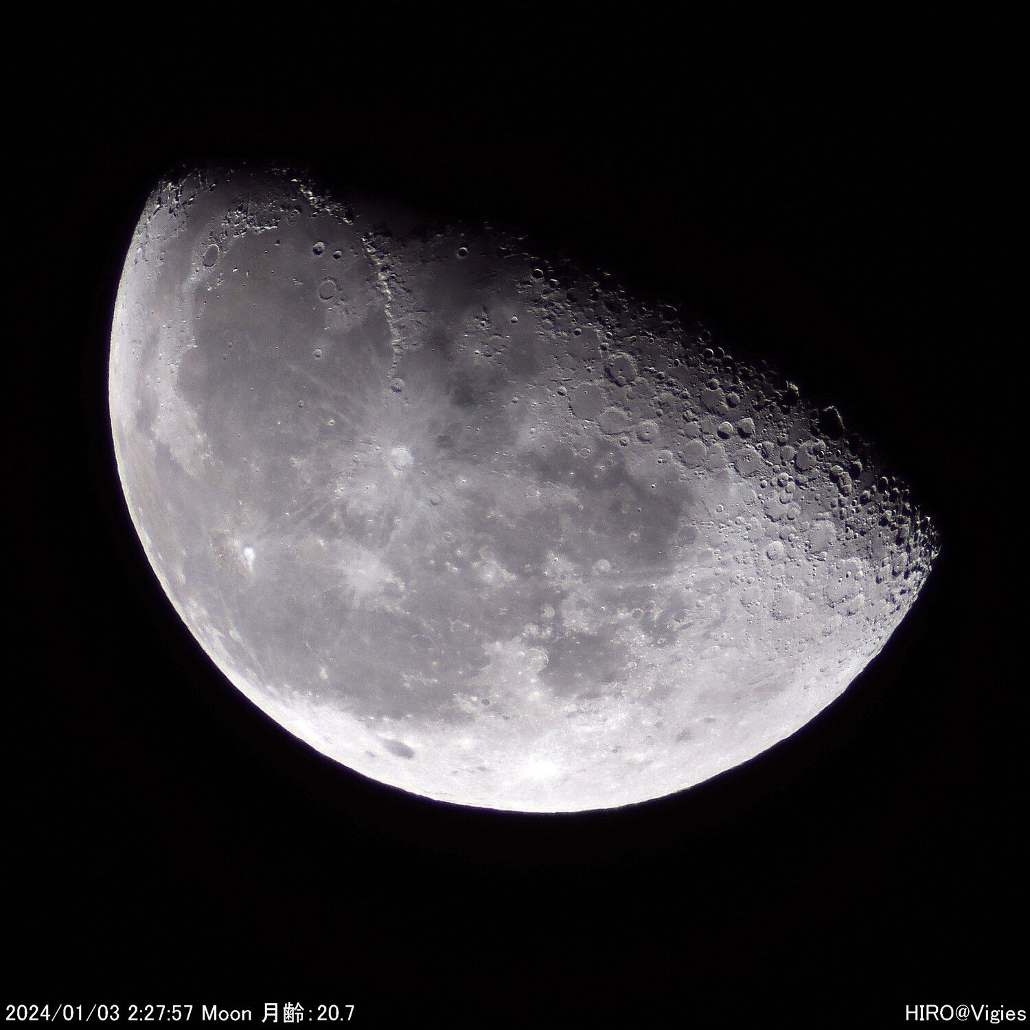 2024年12月29日 令和6(2024)年1月1・3日の天体観測 月の撮影・直焦点撮影 1月1日(月)、3日(水)の天体観測です。この年の瀬になってようやく今年1月分の記事をアップできます。この日は月の1日に月の撮影、3日に直焦点撮影を行いました。1日は1回のみの観測となりました。月齢は19.6でした。そして、3日分です。この日は経時的に3回の観測を行いました。月齢は総じて20.7でした。この日は以上になります。 「天体観測」カテゴリの最新記事 < 前の記事次の記事 > コメント コメントフォーム 名前 コメント 記事の評価 リセット リセット 顔 星 情報を記憶 コメントを投稿する