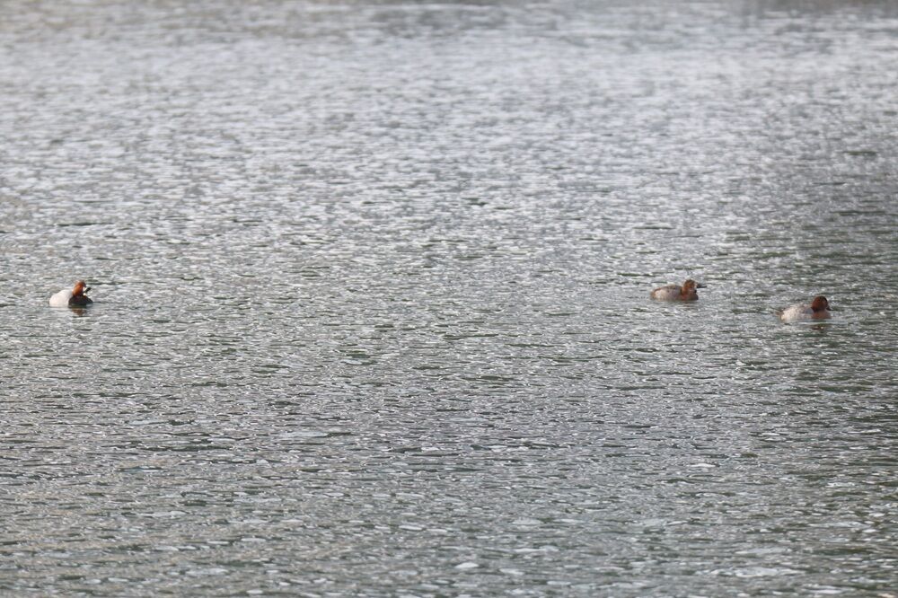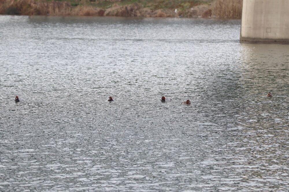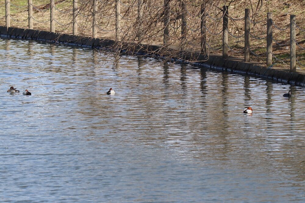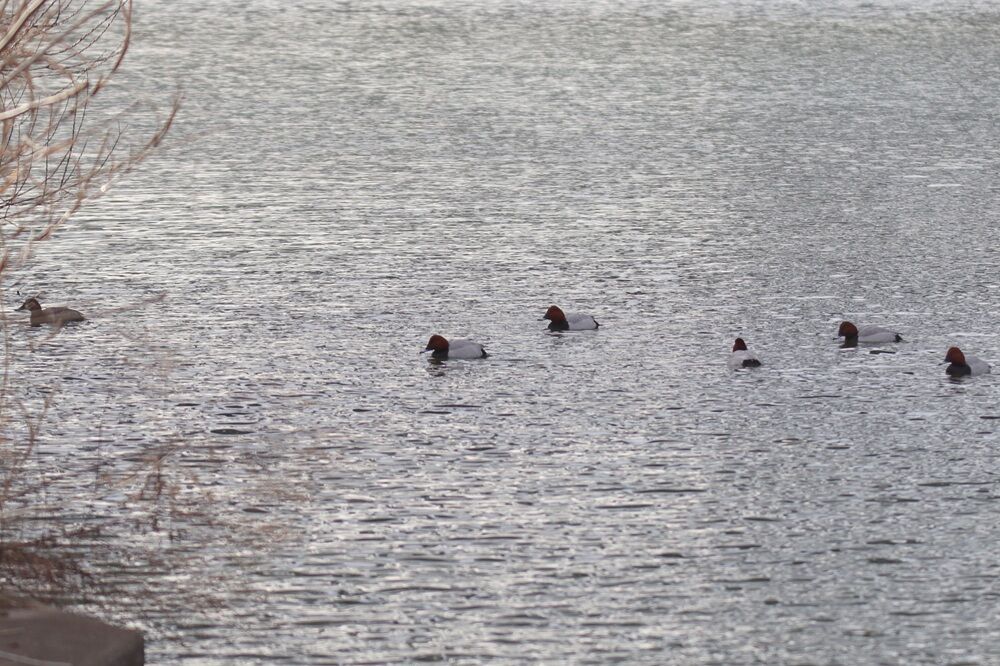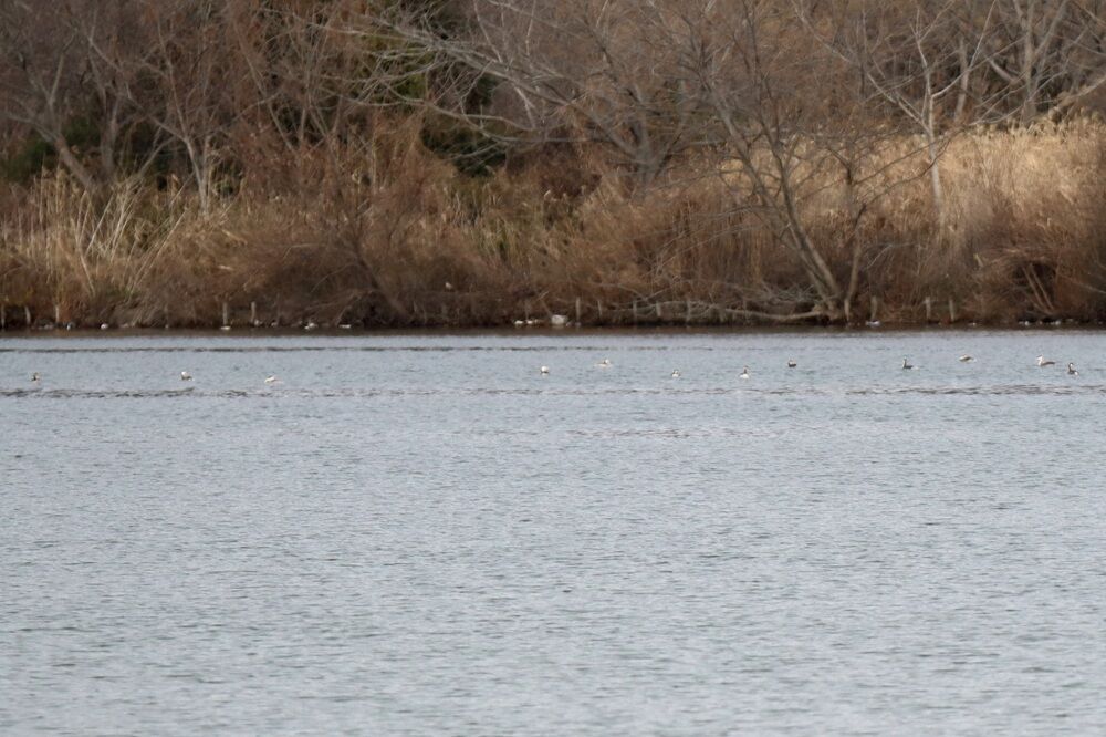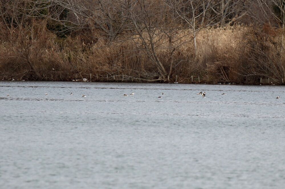災害時船着き場に来ました。ホシハジロの集団がいました。