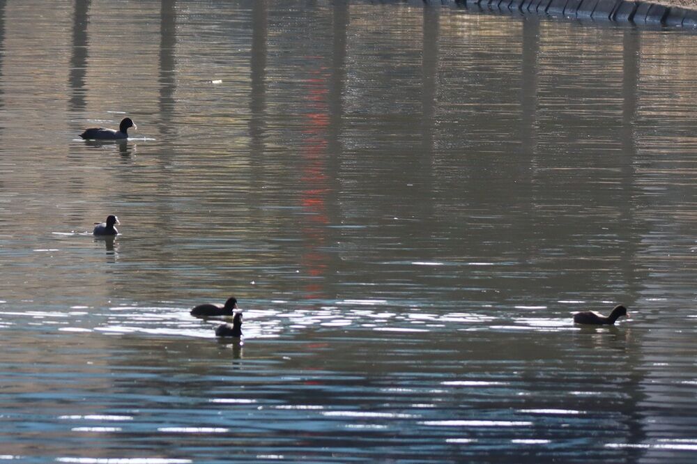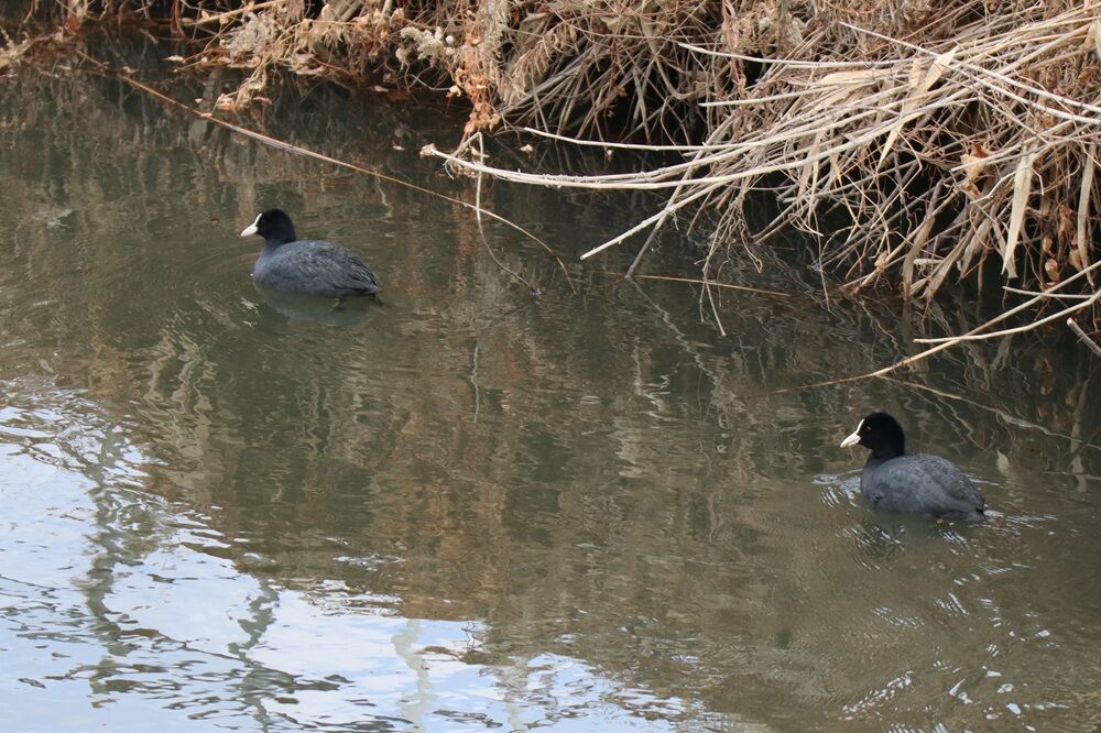 坂川にはホシハジロとオオバンの集団がいました。