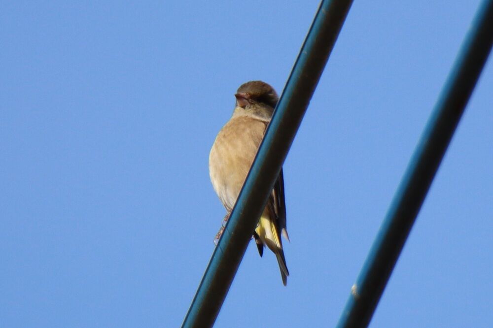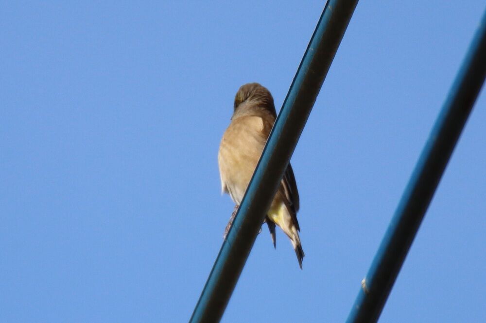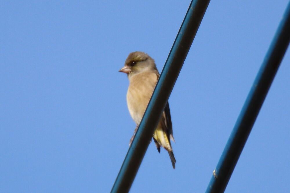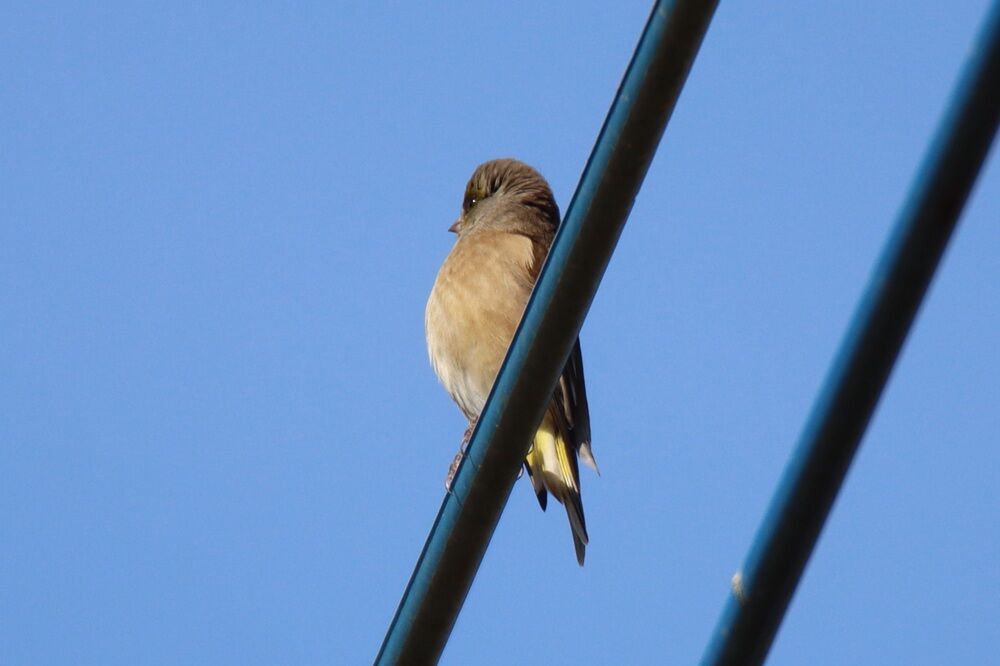 電線にはピンと胸を張っている感じのカワラヒワがいました。