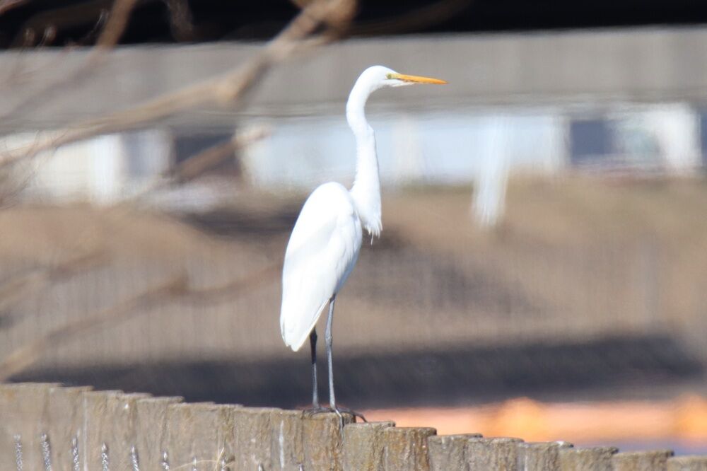 細い波々の柵の上にはダイサギがいました。器用に止まるものです。