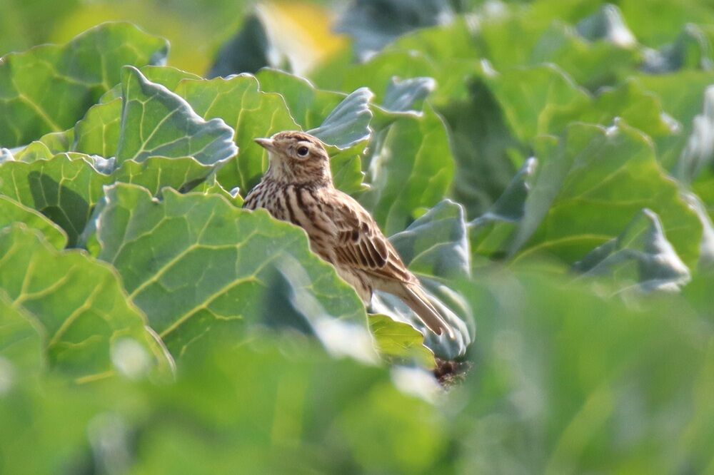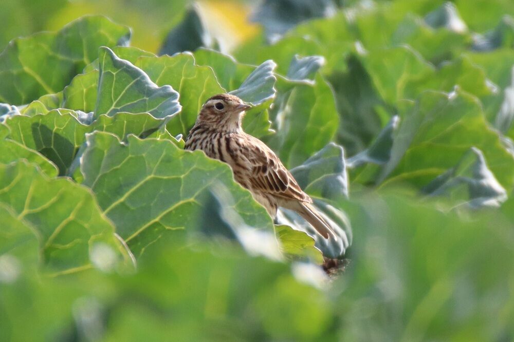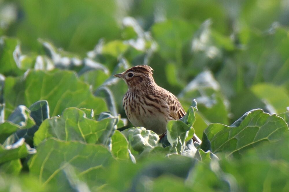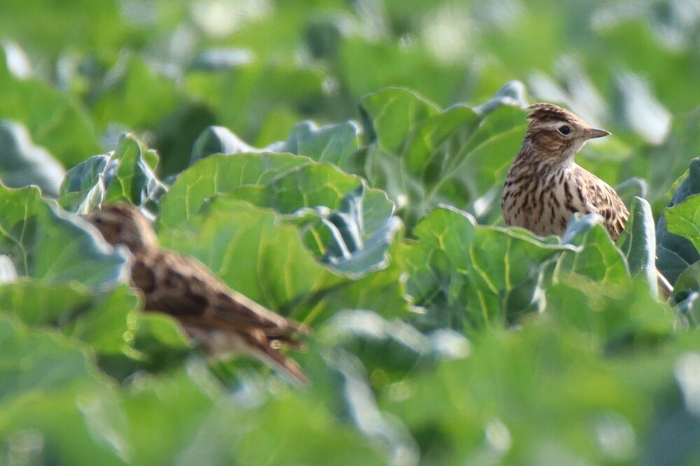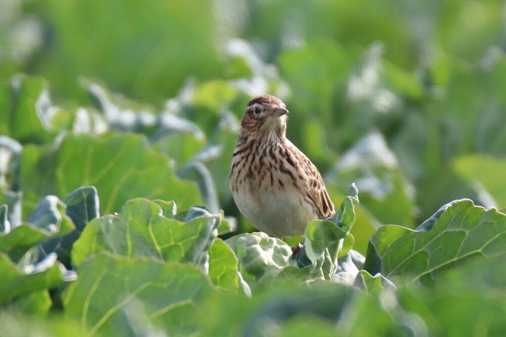 今度は農作物の上にいる本当のヒバリです。