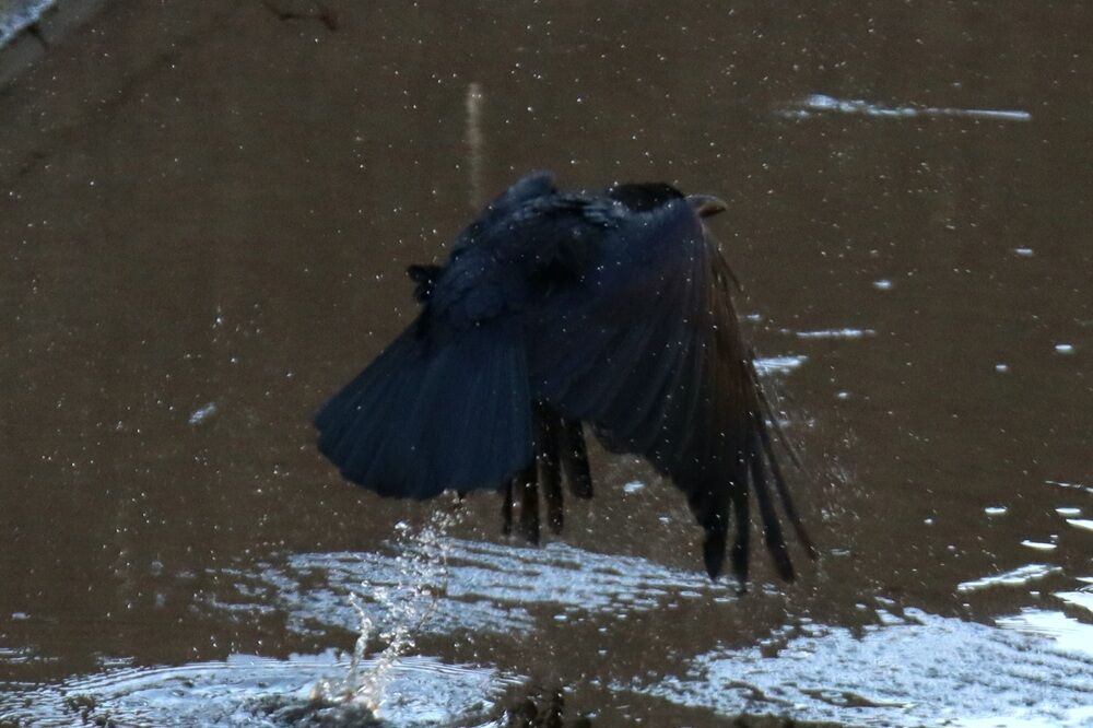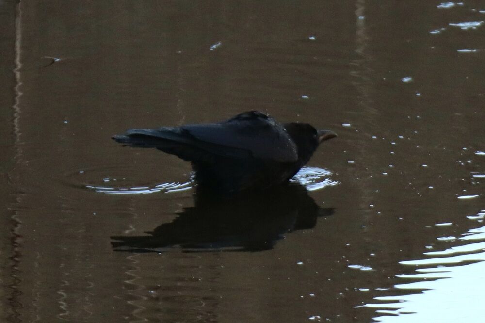 水浴びをするカラスもいました。