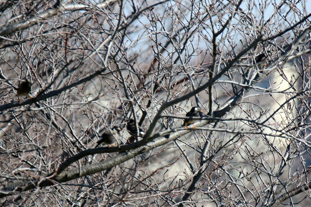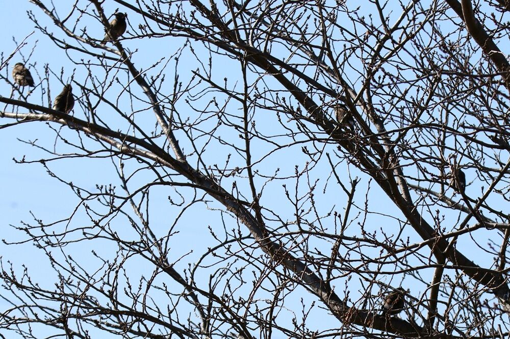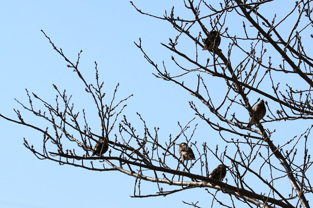 桜の木にも沢山のムクドリたちがいました。