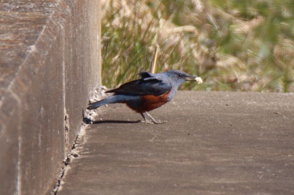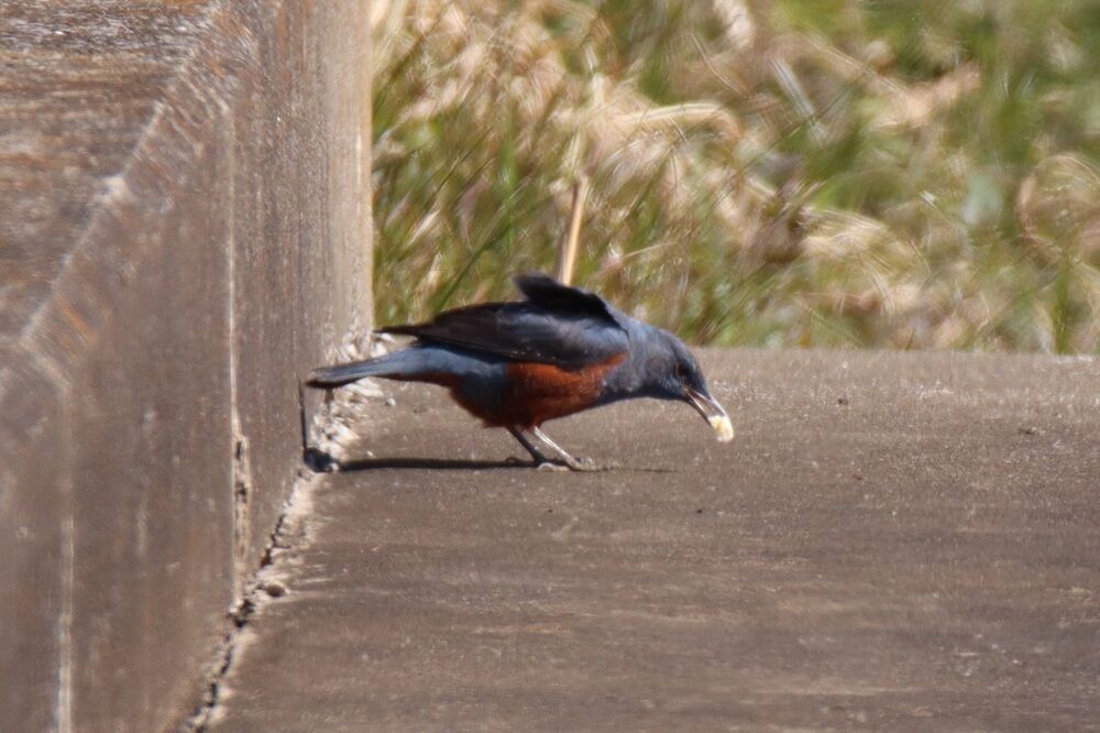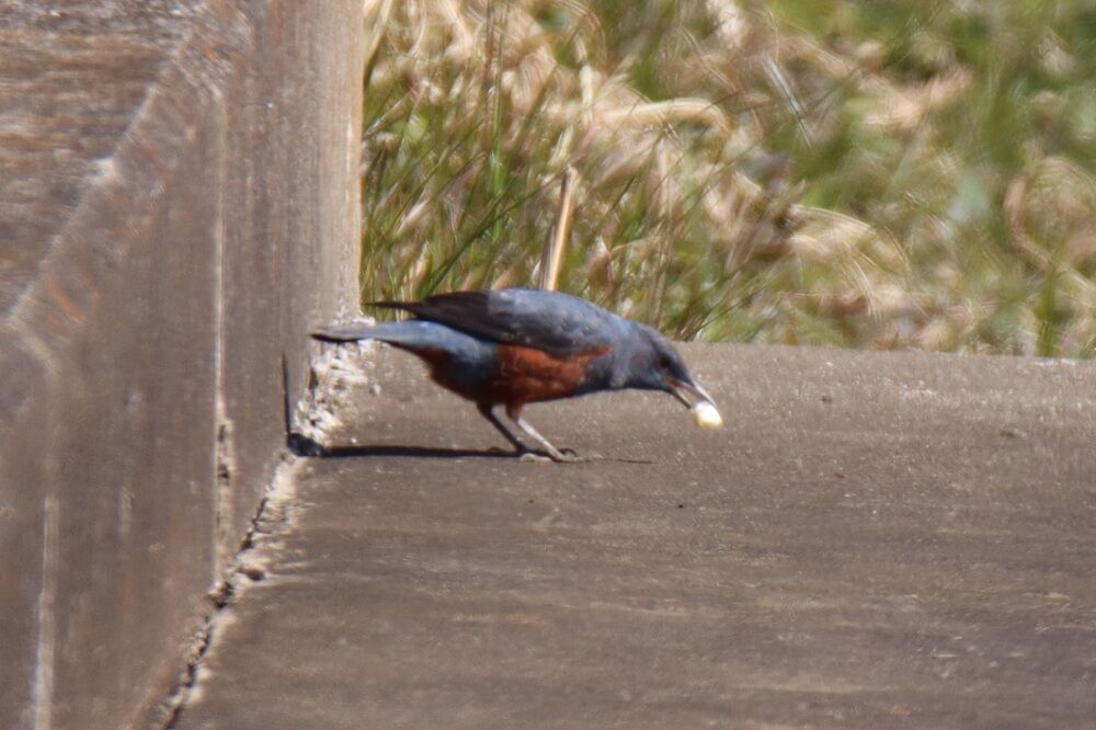 イソヒヨドリは周りを見渡していました。先ほどの何かは食べていませんでした。